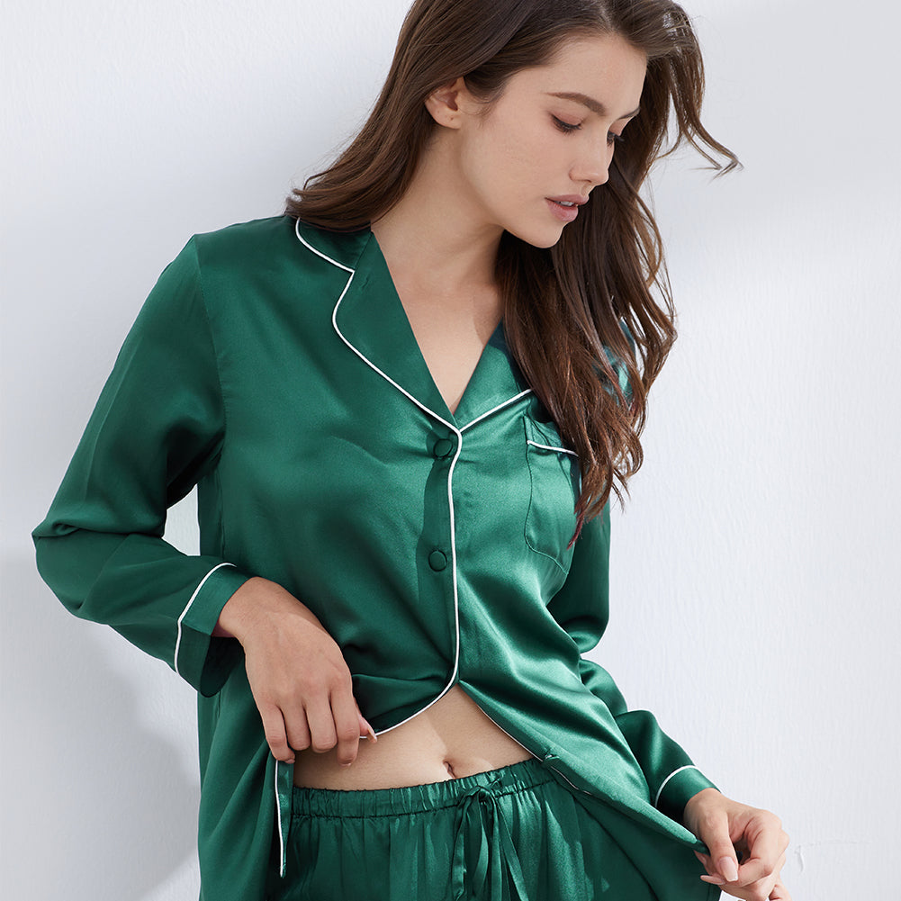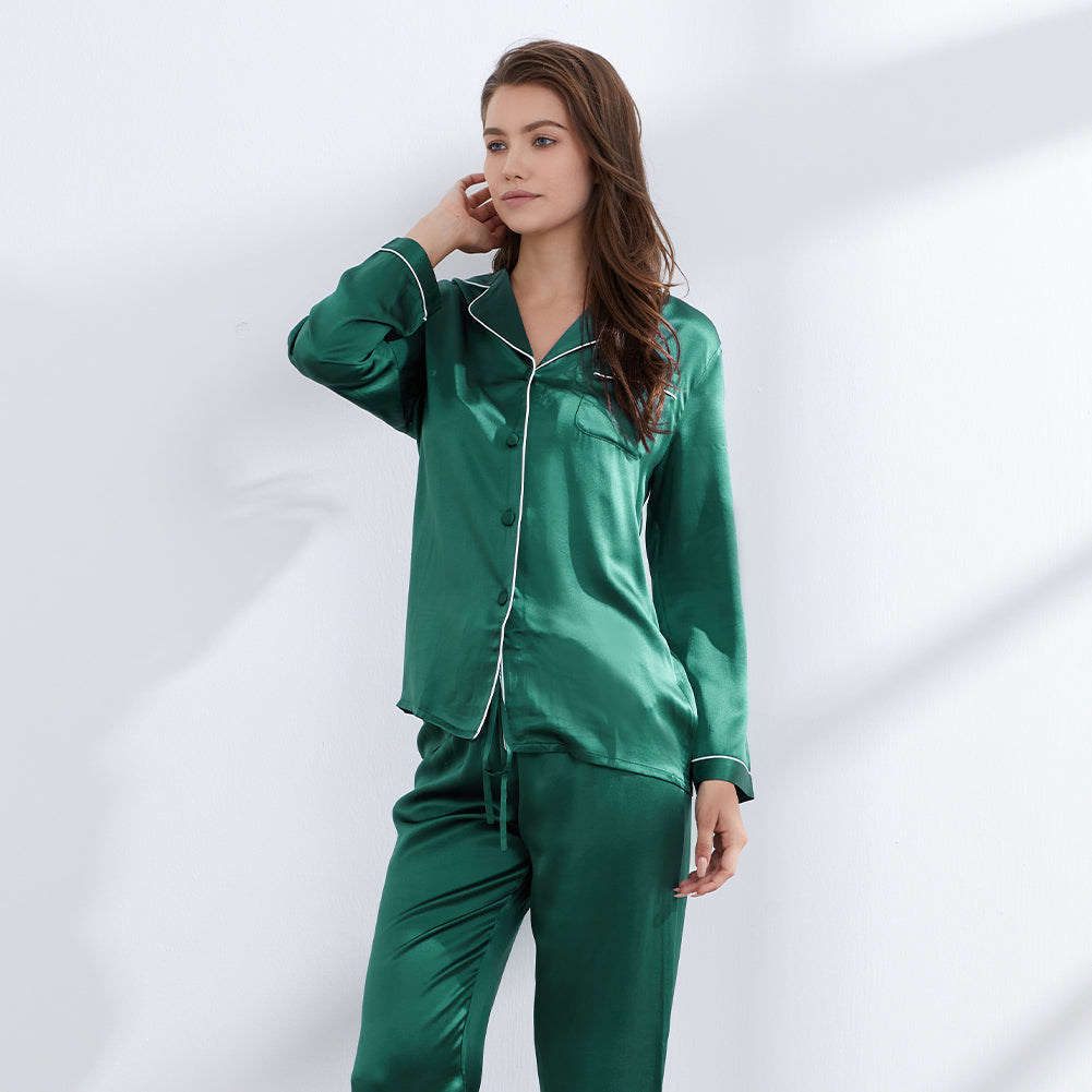 Are you looking for a comfortable, breathable silk pajama set in refreshing green? Look no further than the 19 Momme V Neck Long Classic Silk Pajamas Set.
