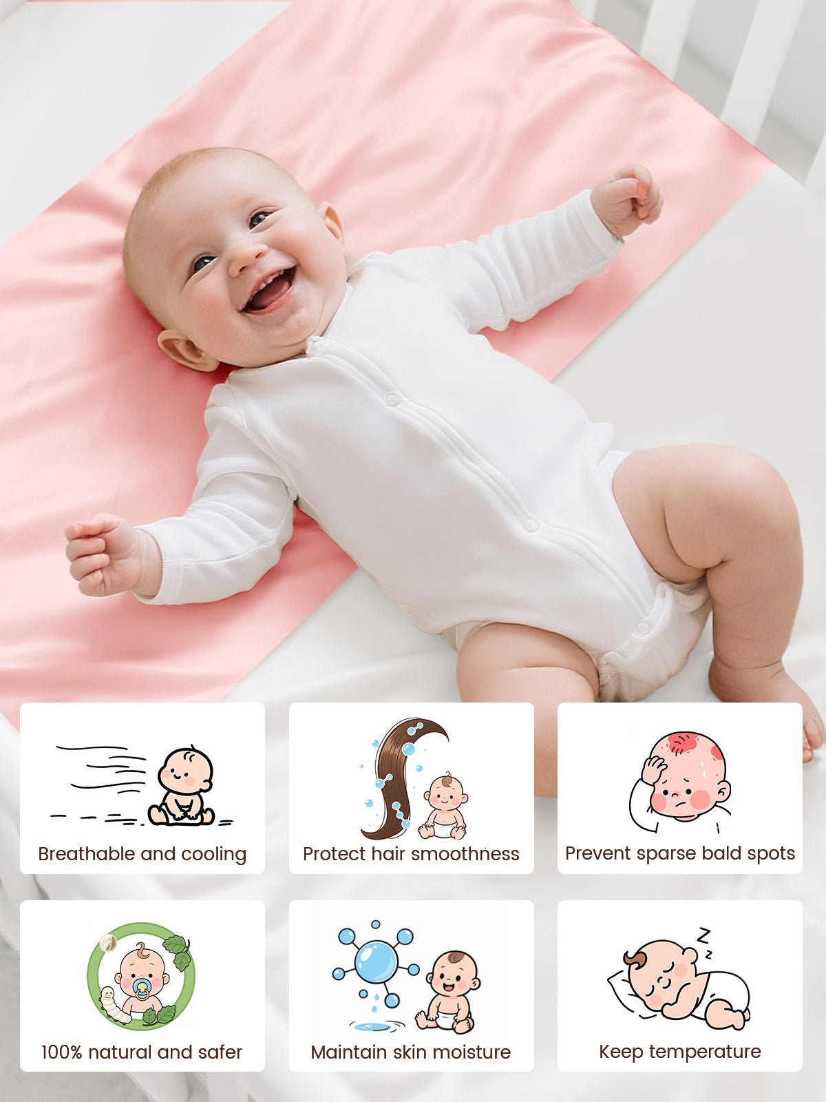 Protect and nurture your baby's hair with our designed Crib Silky Sleeve—a hypoallergenic silk that reduces frizz, balding, and breakage while keeping hair moisturized and cool.