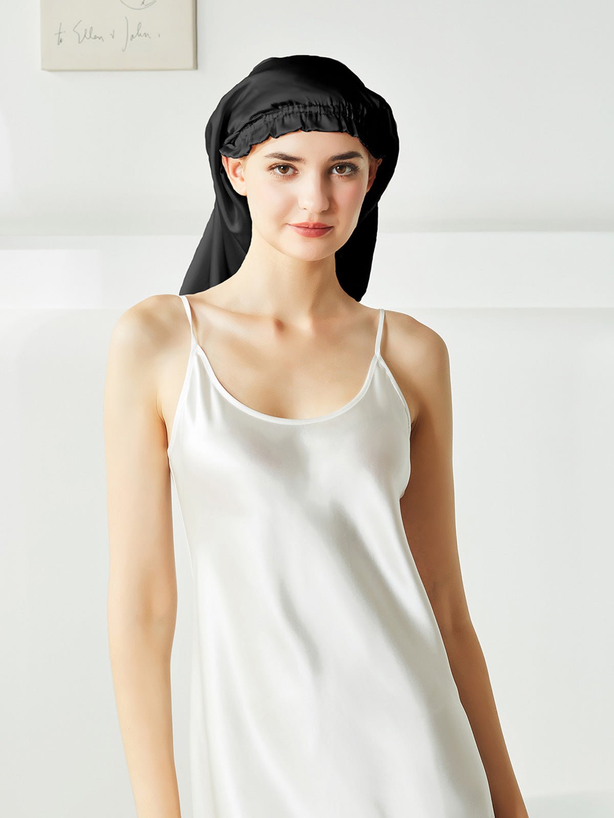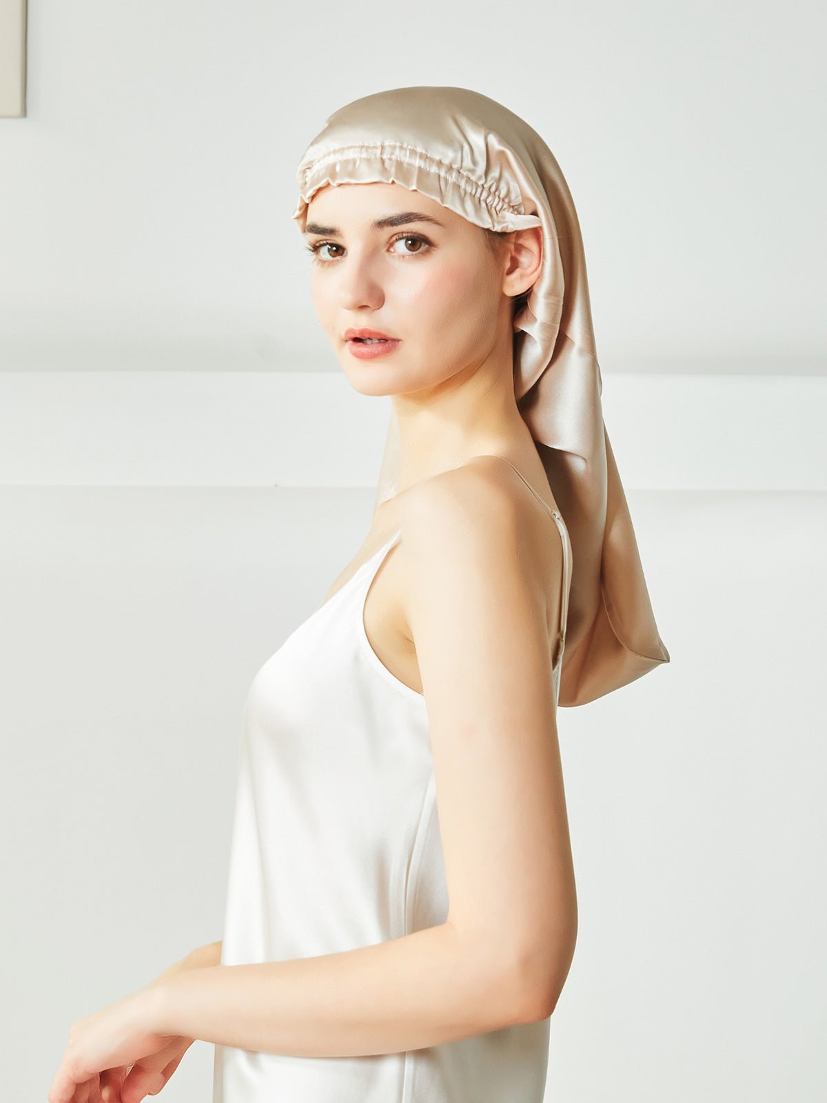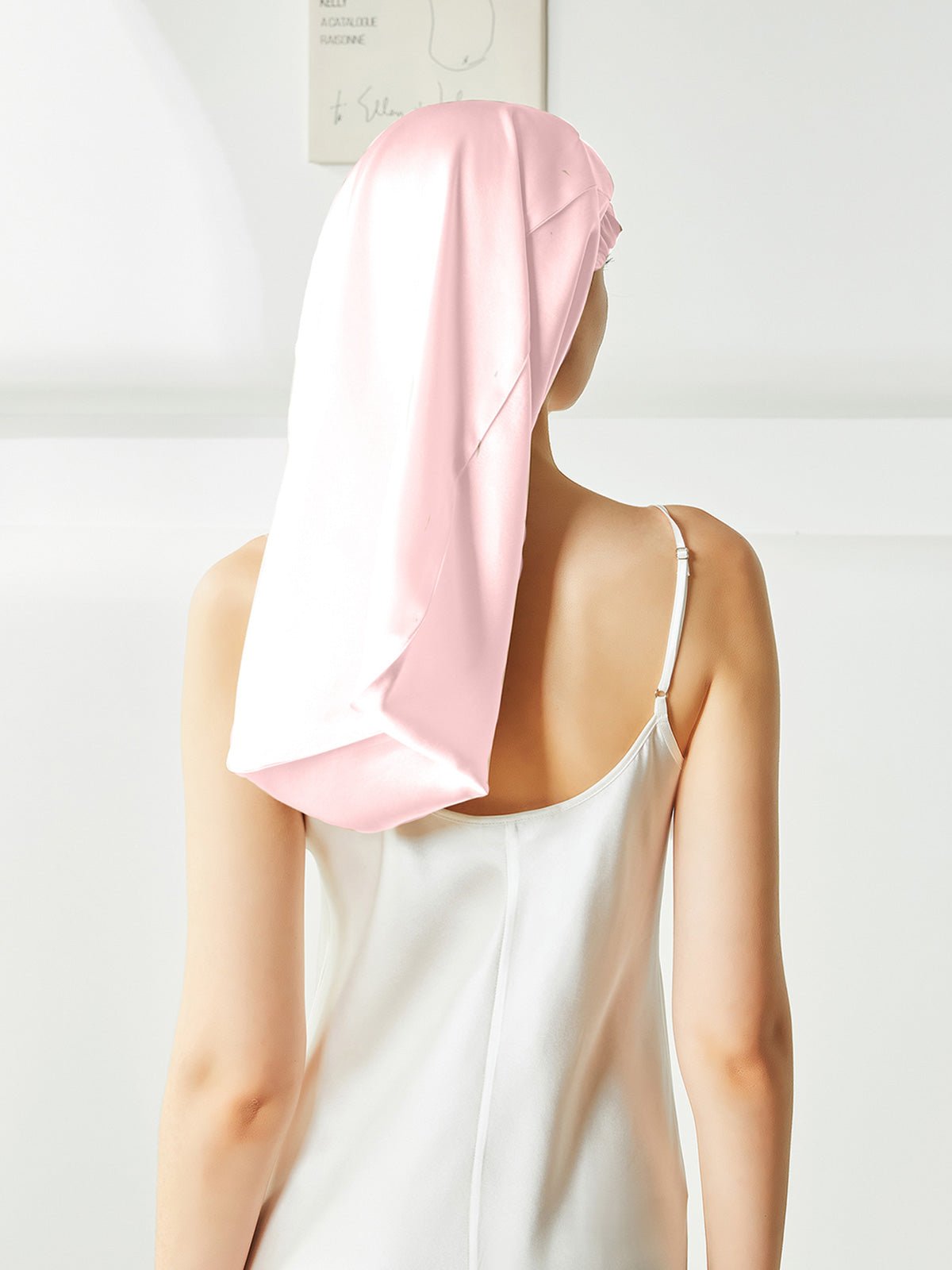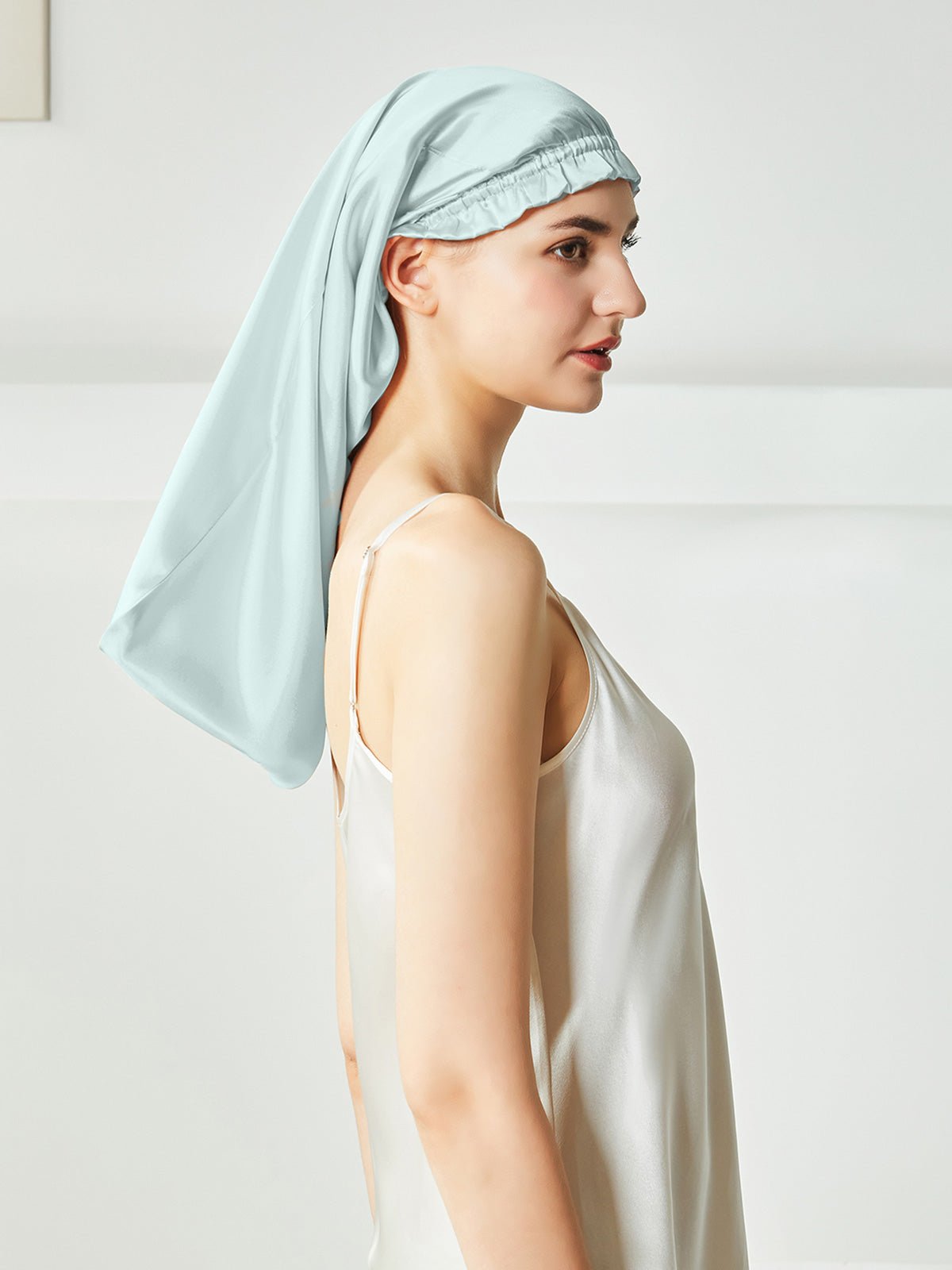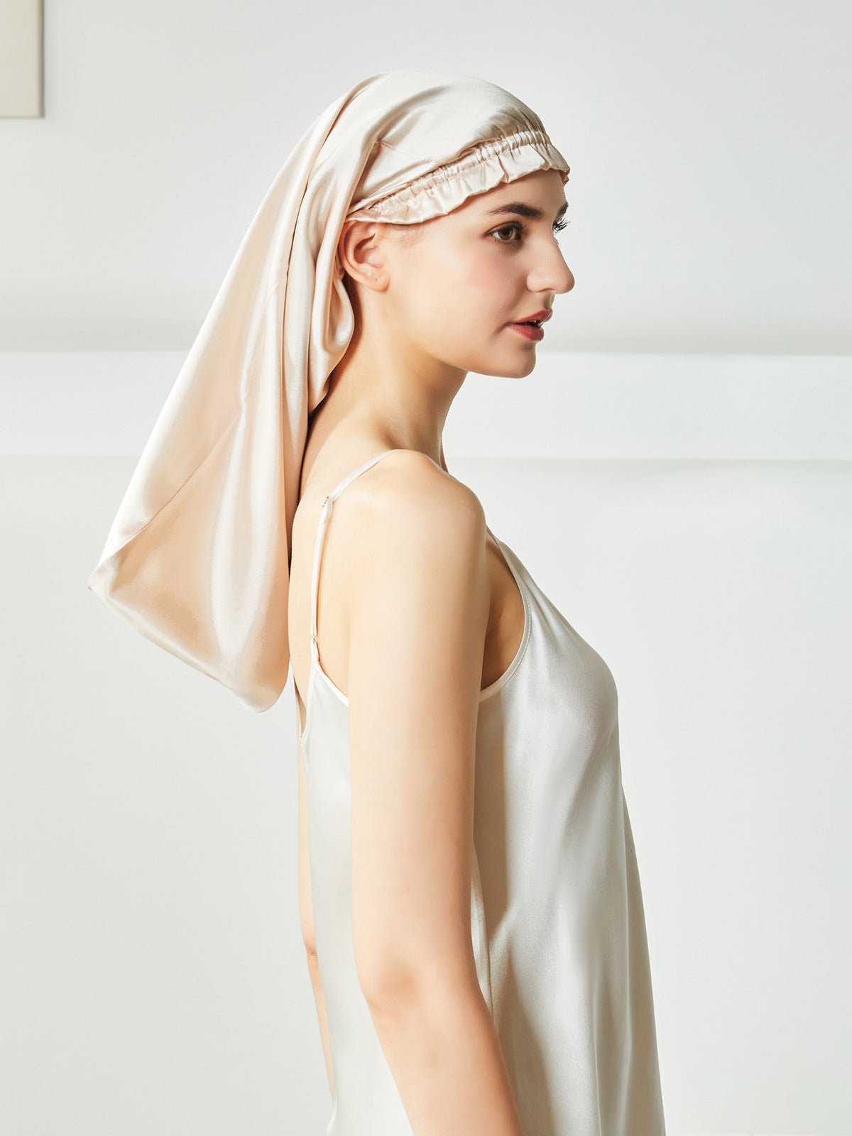 This is a long silk sleep bonnet. You can be put your long hair in the nightcap very relaxedly, instead of being folded on the head like the short nightcap, it can be easily worn on the head before going to bed. Silk can effectively keep the hair properly hydrated, not frizzy, and is beneficial for the hair.