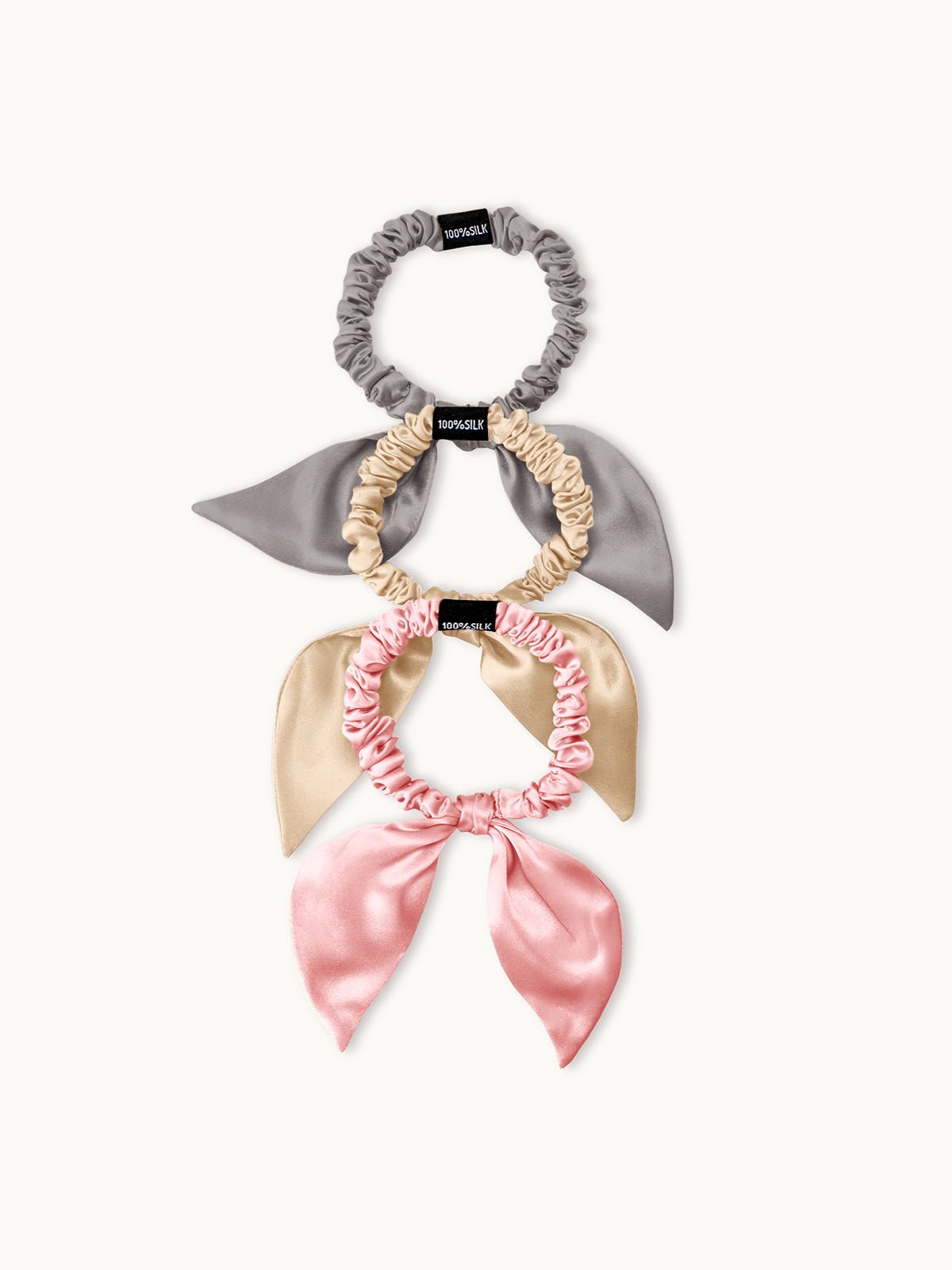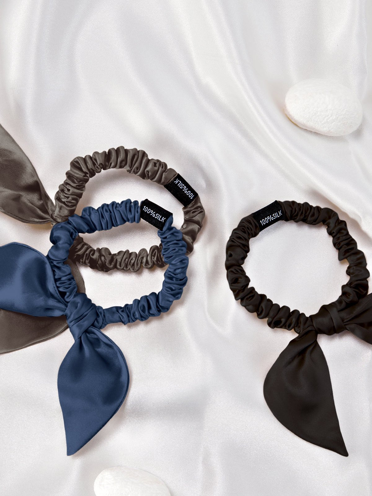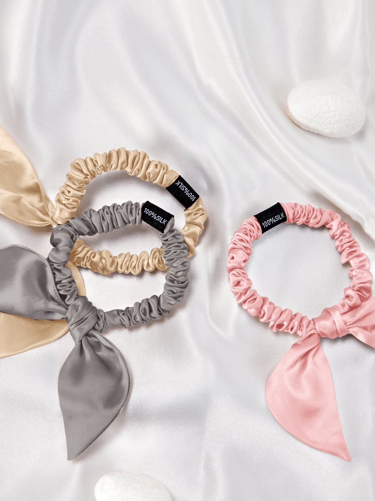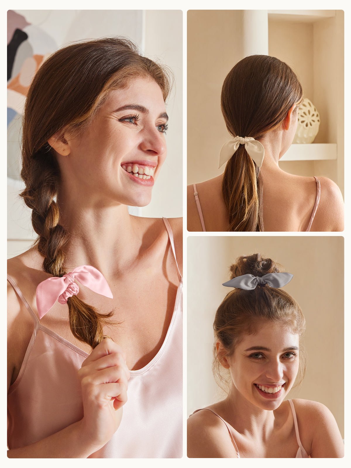 Double the beauty, zero the damage! Our silk scrunchies with delicate bows add a romantic touch while protecting your hair. Ultra-soft, no-snag silk keeps strands smooth, while the bow elevates your style effortlessly. Perfect for dates, brunch, or just feeling fabulous!