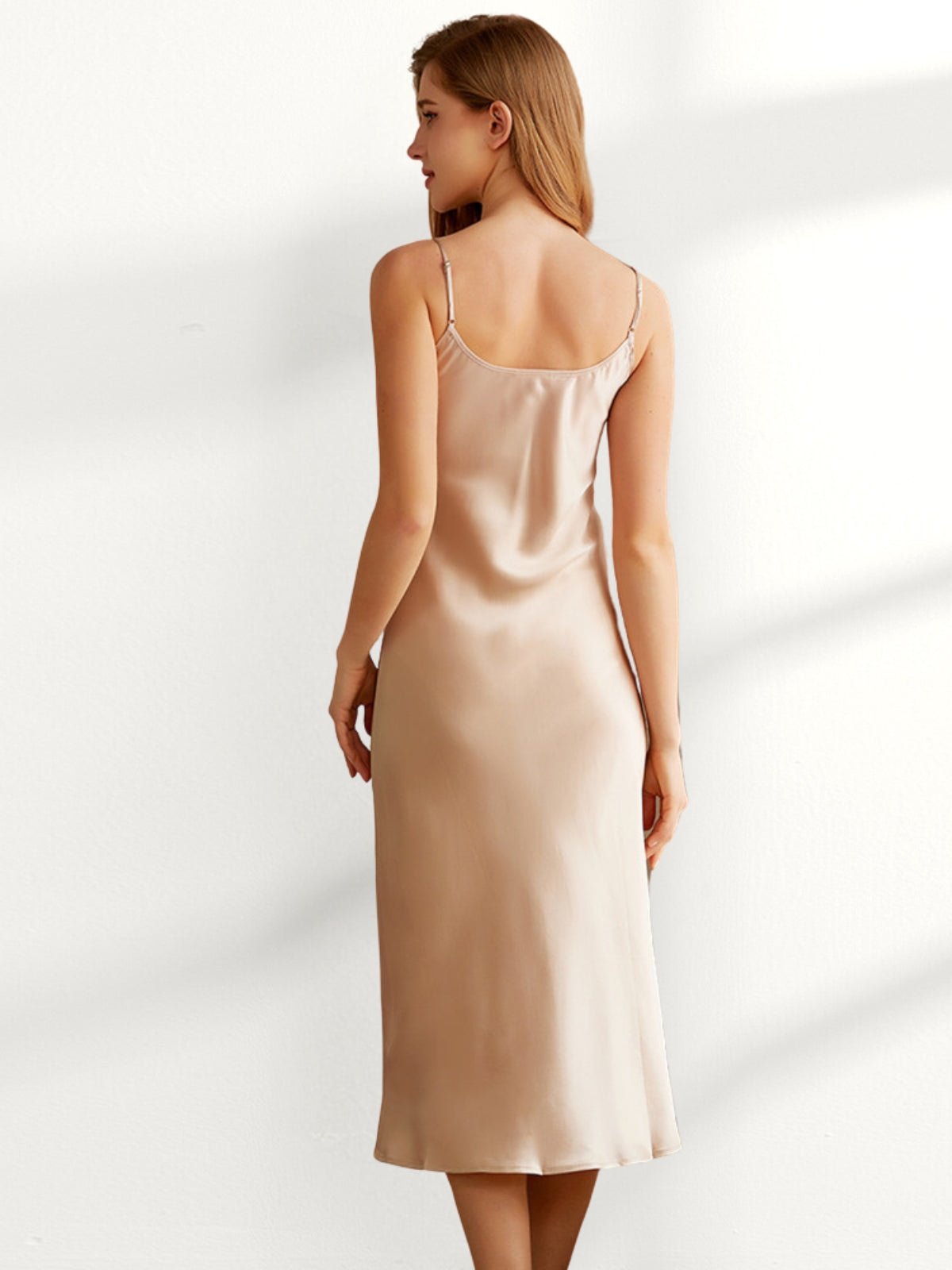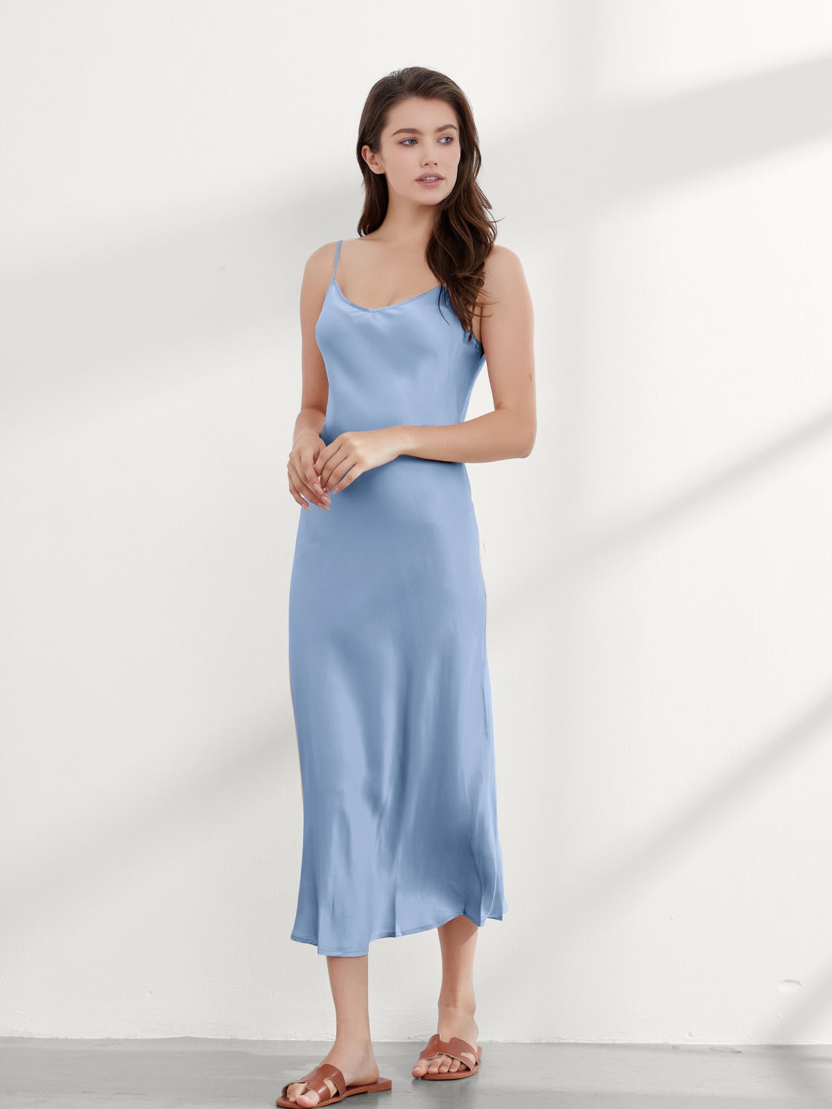 This ankle-length 100 mulberry silk nightgown long is cut on the bias for an incredibly slim fit, gorgeous drape, and adjustable shoulder straps. Add a shawl, or coat, or wear it alone, and you have the perfect evening look!