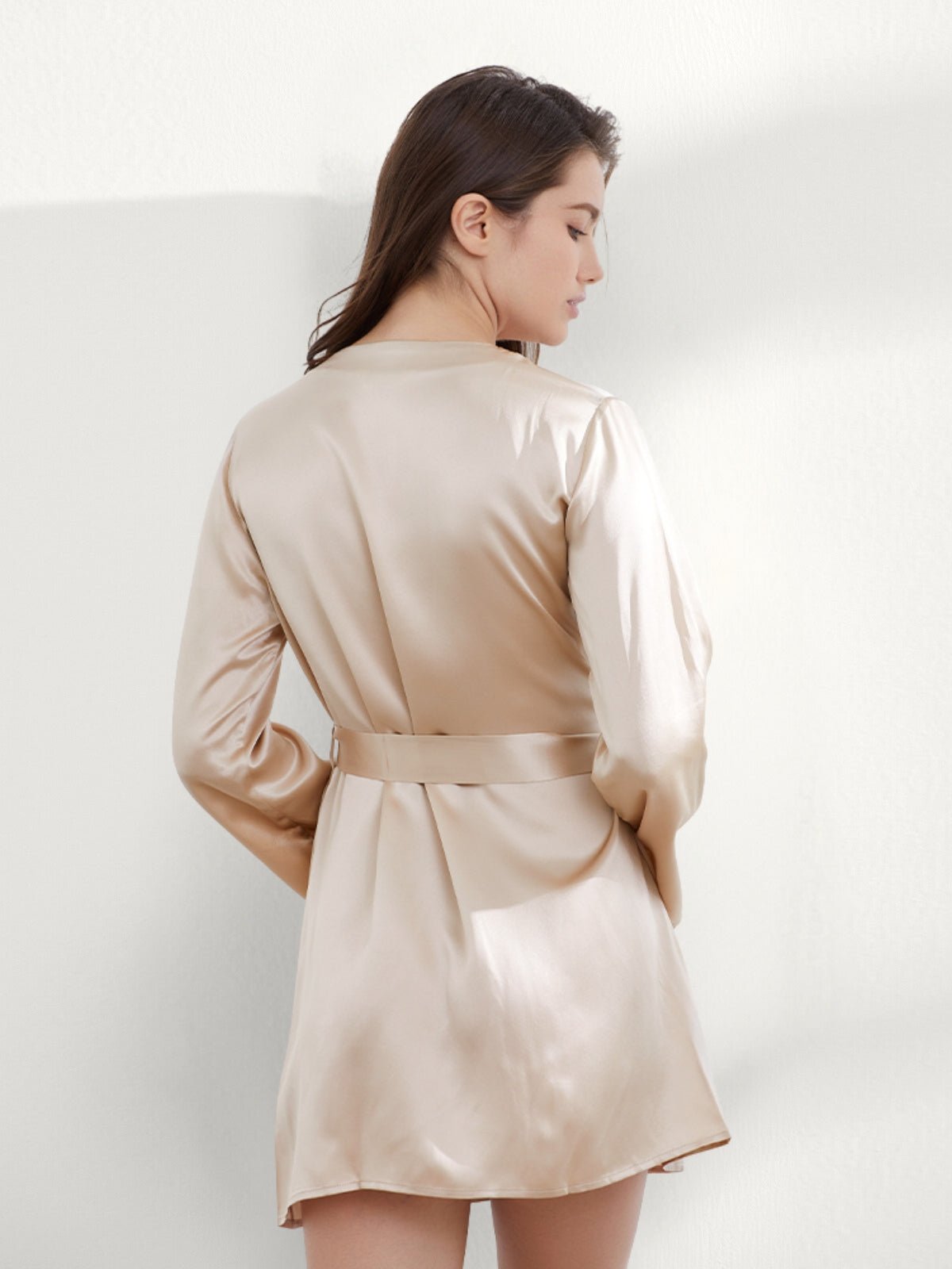 The silk bathrobe is made of high-quality real silk material which feels super soft and contains 18 kinds of amino acids it is protein fiber, lightweight & wrinkle-Resistant, comfortable, and healthy, offering better protection for our skin.