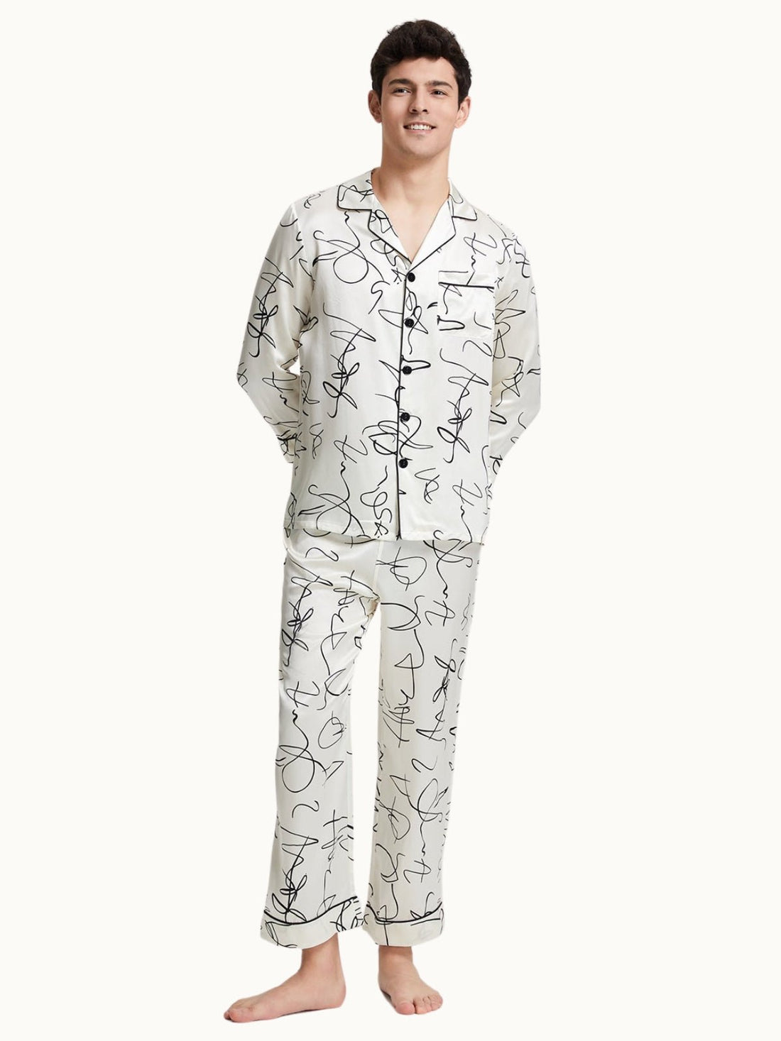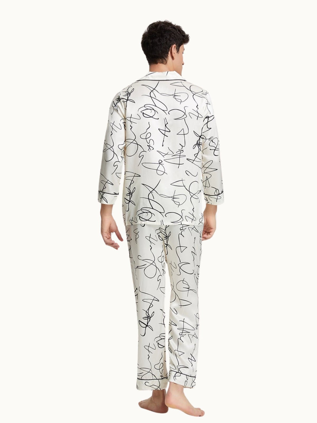 Men's Artistic Printed Silk Pajamas SetMen's Artistic Printed Silk Pajamas Set- Regular price