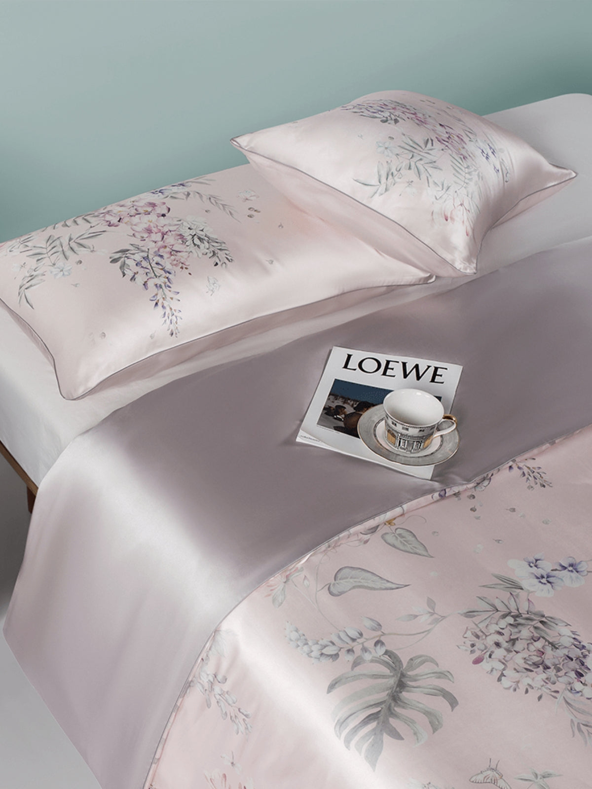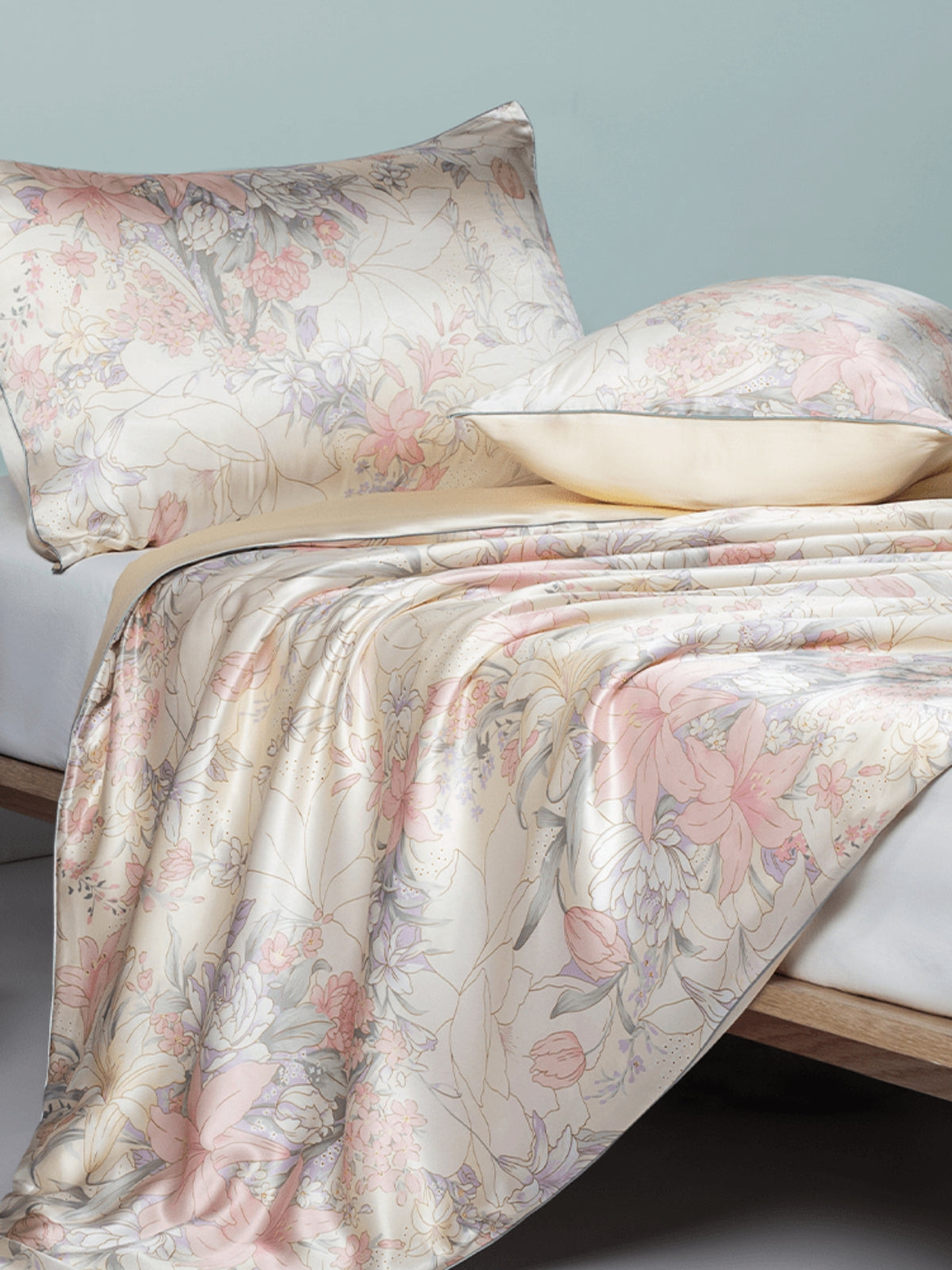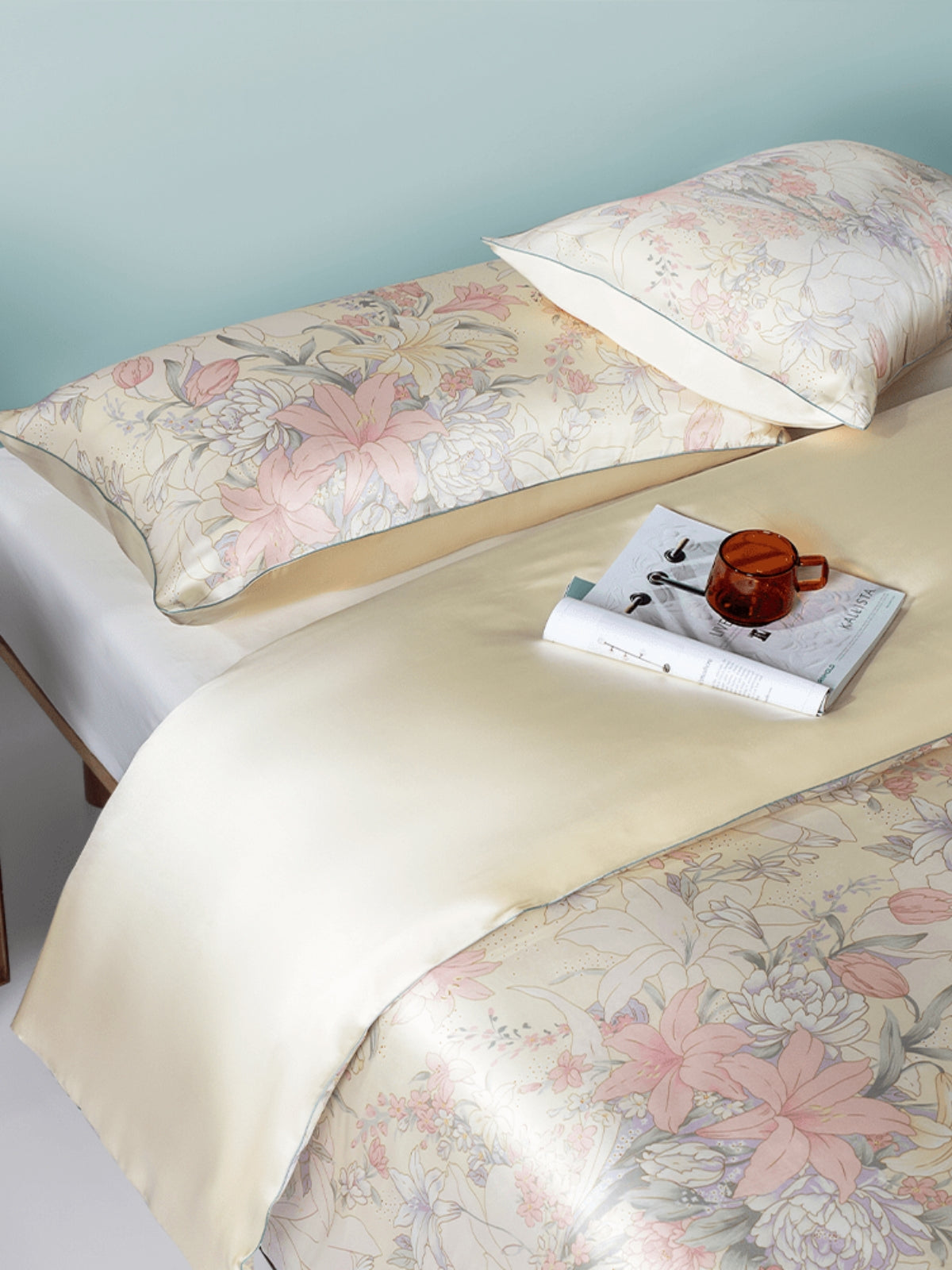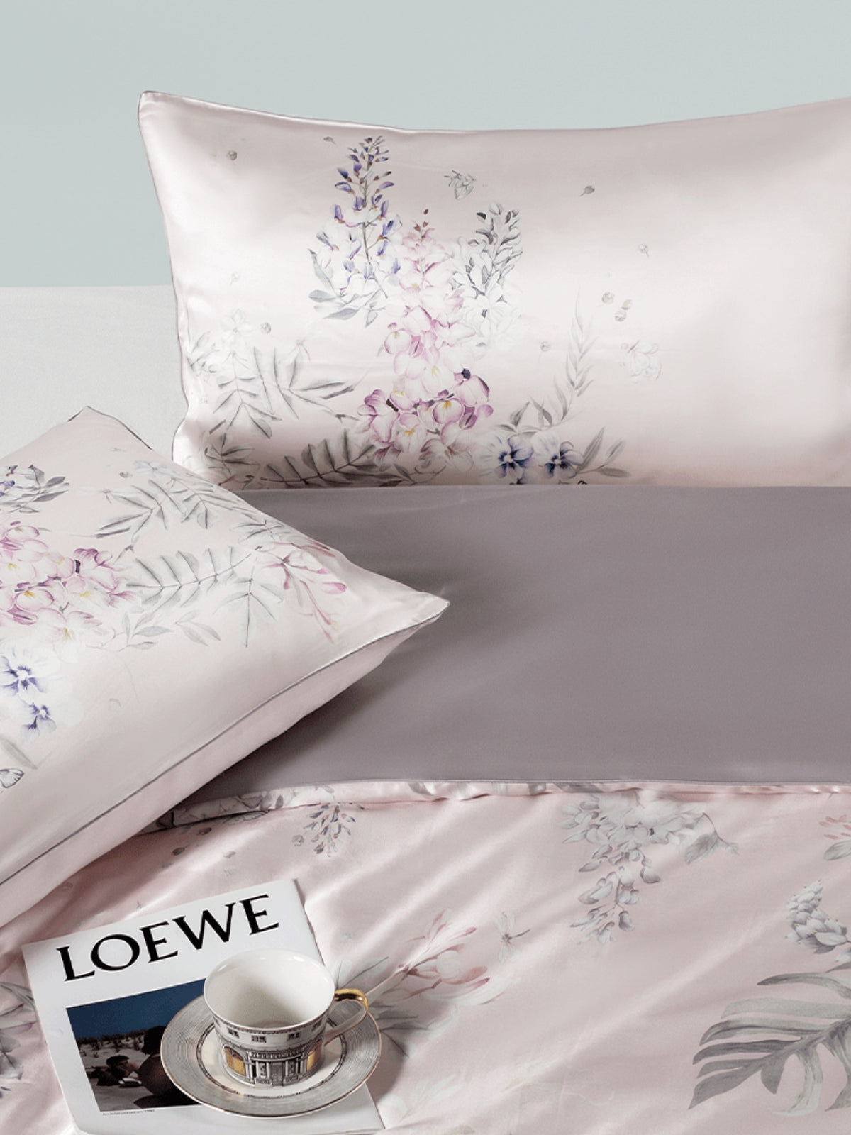 19 Momme Silk Pillowcase with Blossom Pattern(One Piece)