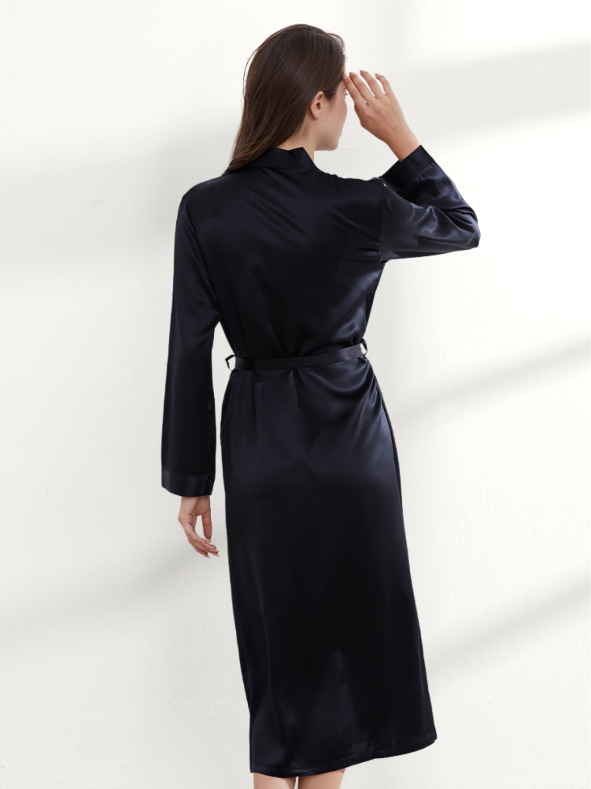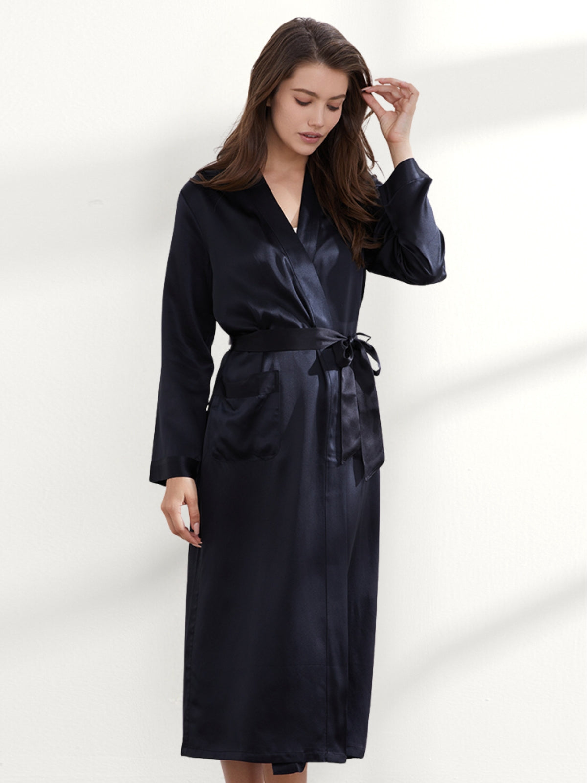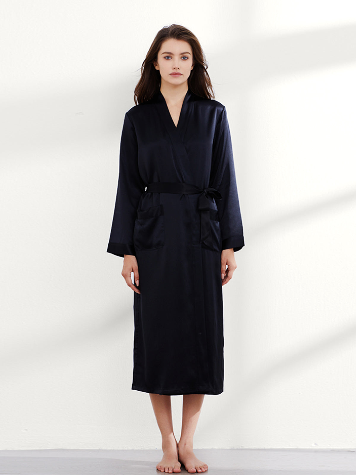 This silk pajamas with long robe will brighten your night whether it is worn alone or with another piece. It has hydrophilic ingredients and is made entirely of mulberry silk, making it gentle enough for delicate skin.