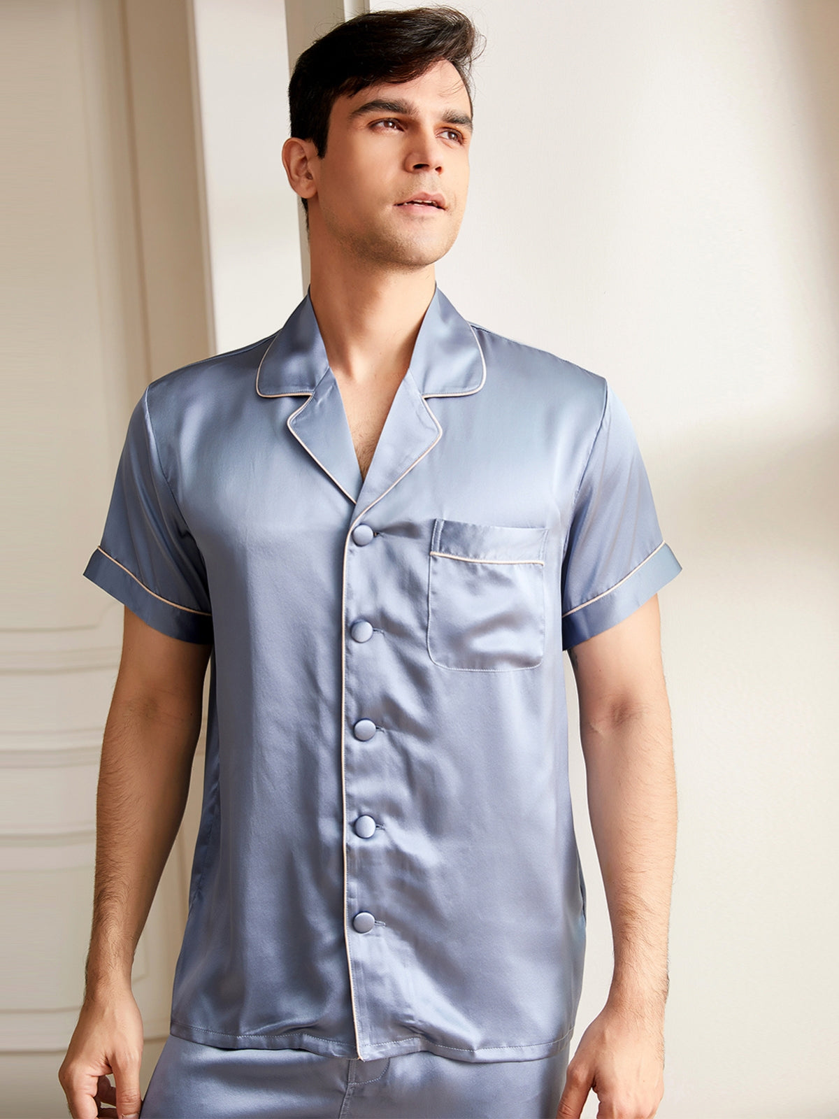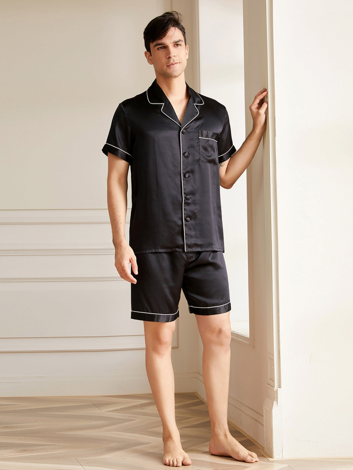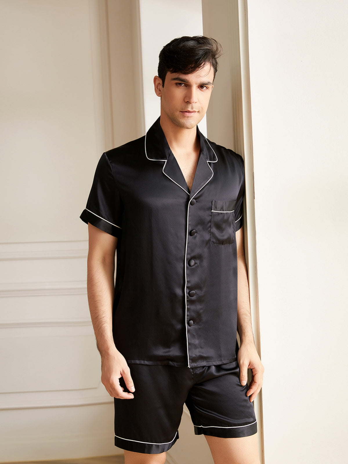 When our classic top and matching pants meet our beloved silk fabrication, a love story begins. Introducing our newest 100% Mulberry silk set. Perfect for the men in your life who loves a slice of luxury.