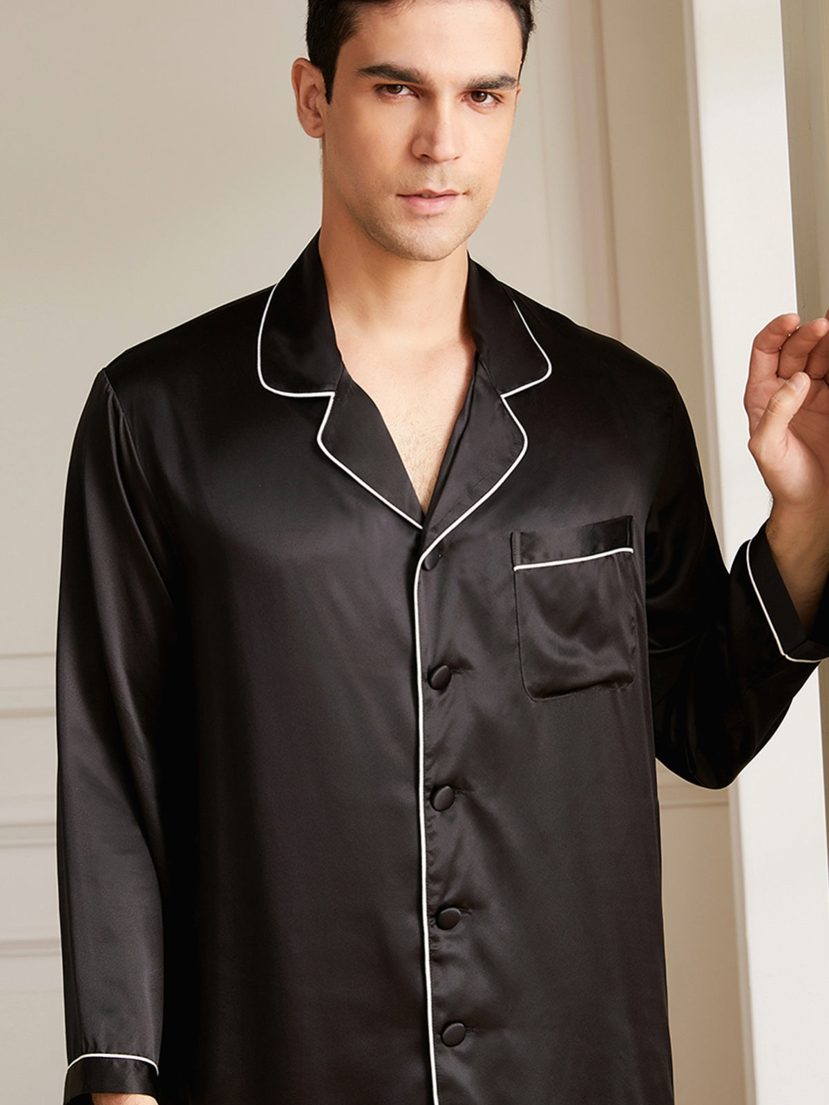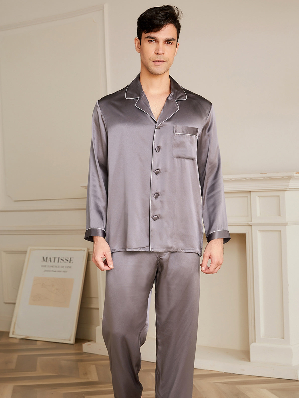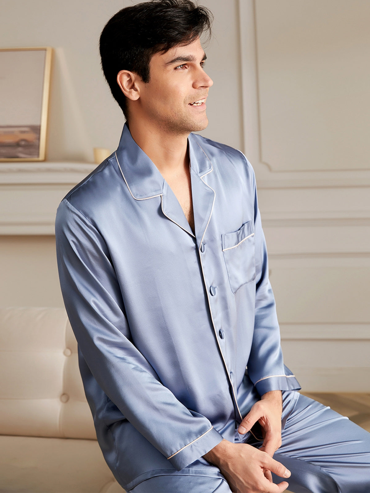 - Style: Two-piece silk pajamas set