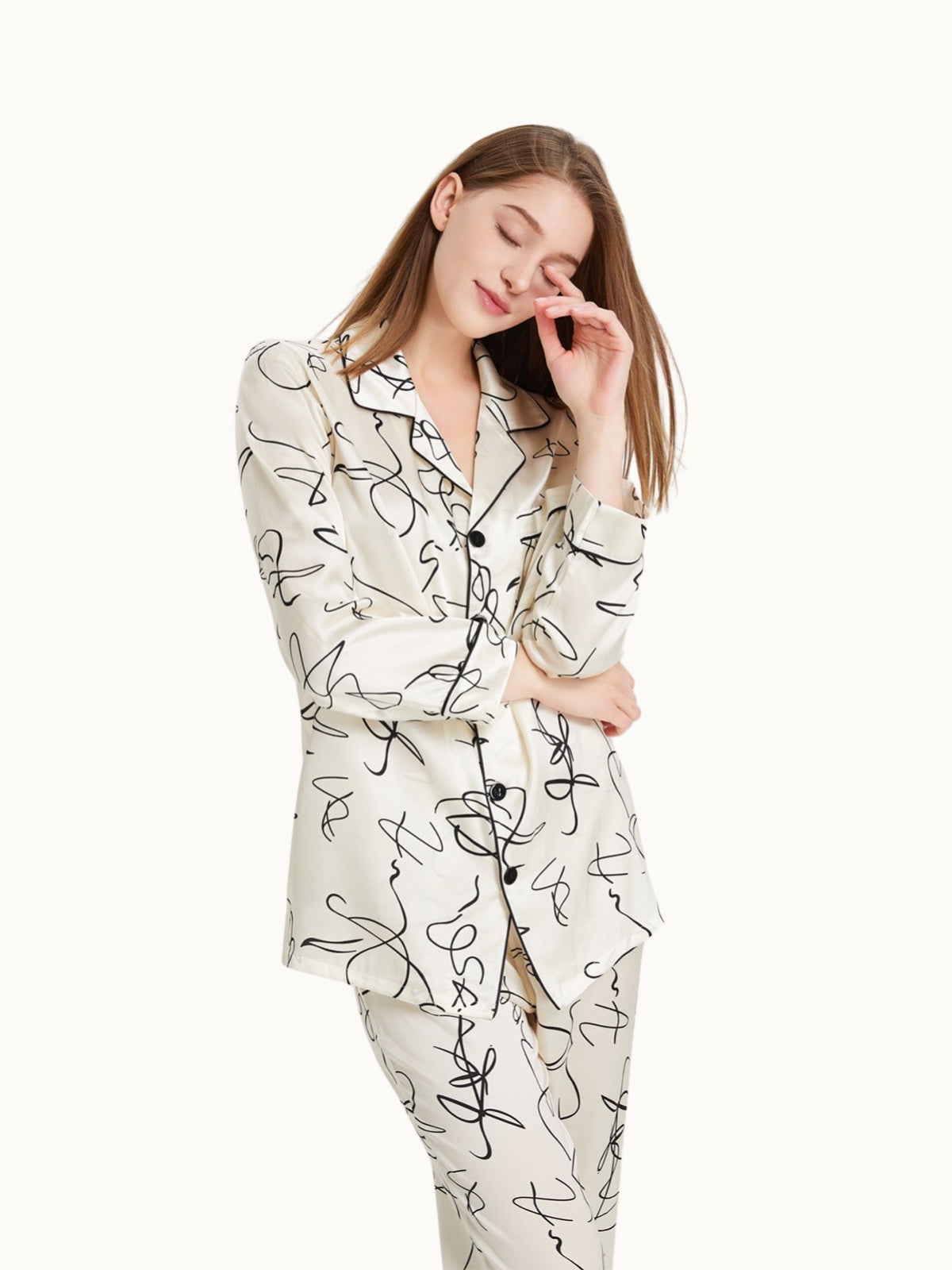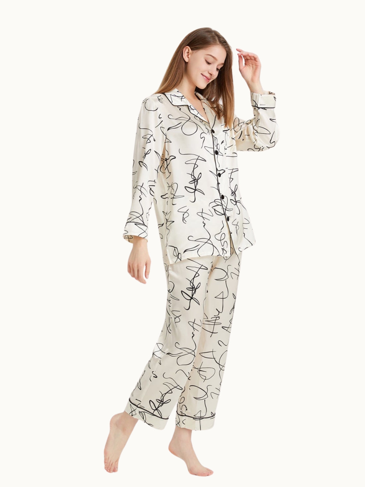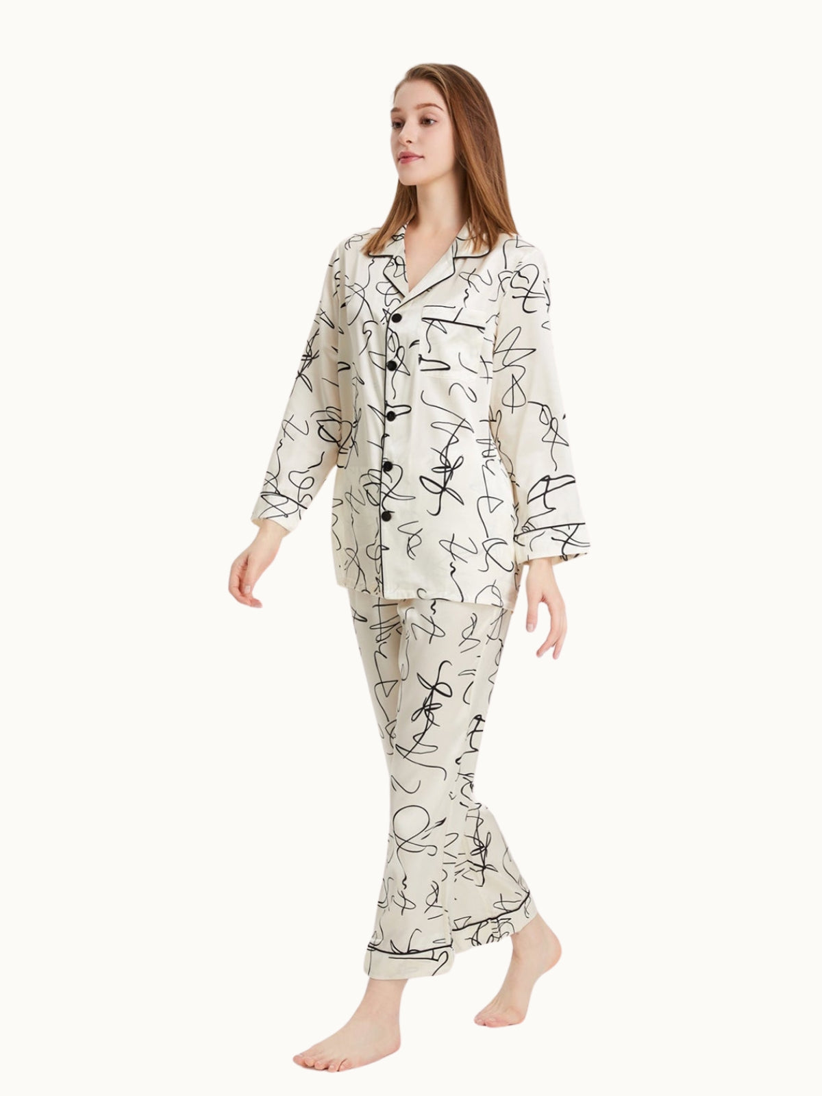 - Style: Two-piece silk pajamas set