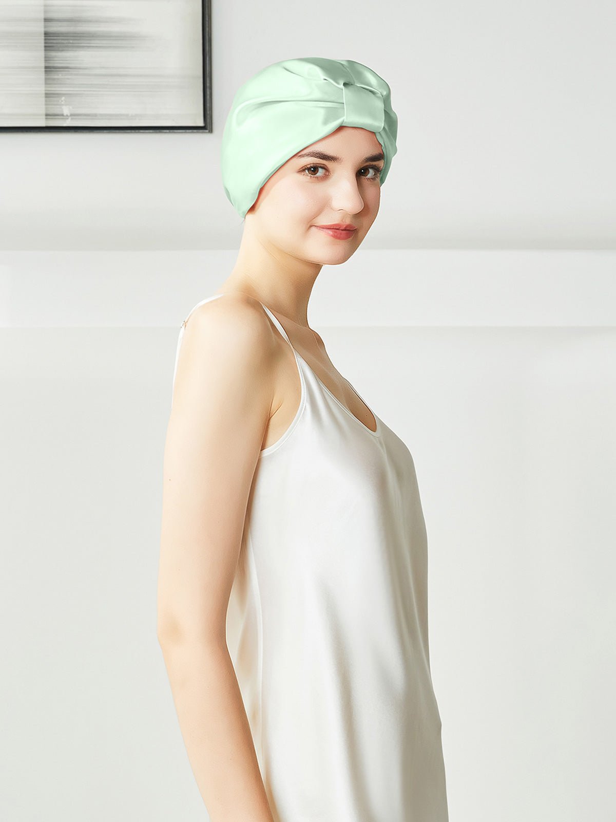 Immerse yourself in nighttime luxury with our pure silk night sleep cap. The silk bonnet, crafted from the finest quality pure silk, offers unrivaled smoothness, minimizing friction for a restful slumber. Bid farewell to morning hair woes as the snug fit cradles your locks, leaving you with effortlessly beautiful hair, free from tangles. Designed for the discerning sleeper, our silk sleep cap is a stylish and practical nightly essential. Embrace the opulent touch of pure silk and indulge in a night of luxury with this sleep cap.