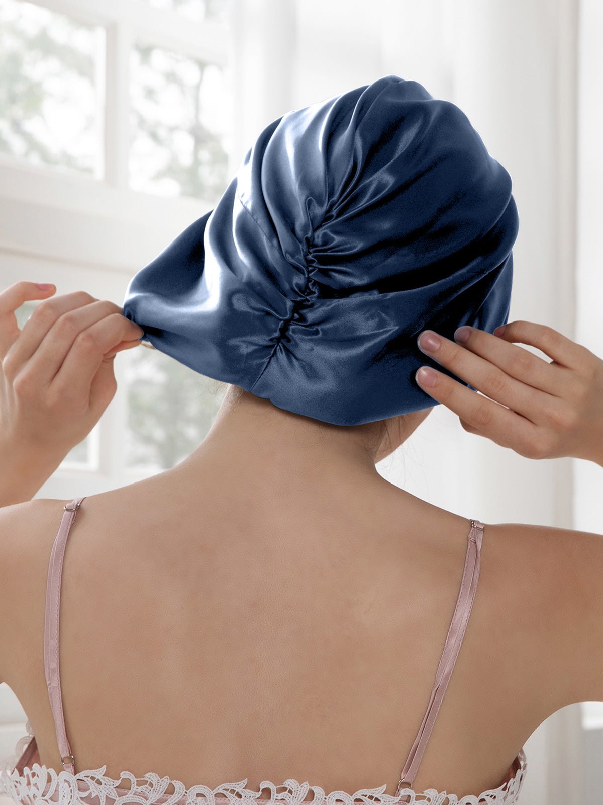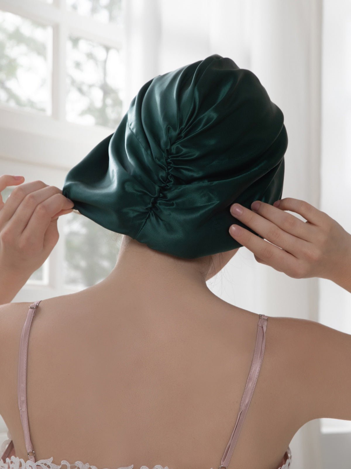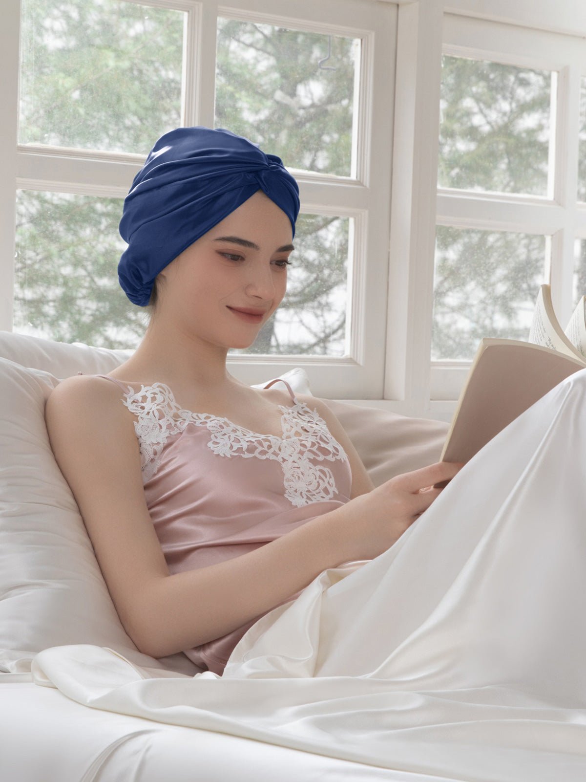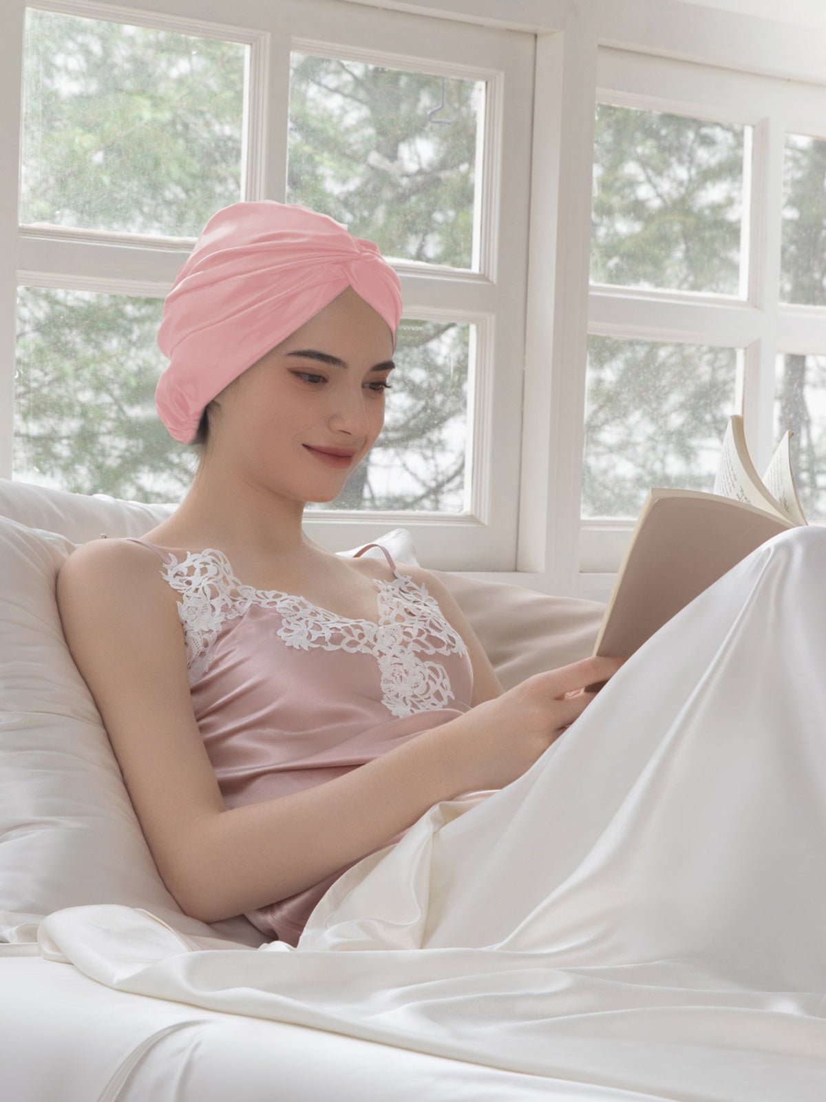 This is a retro-style turban featuring a long hat with folds, this hat can be worn as a fashion accessory, or it can be a great nightcap. The fabric is made of 100% real silk. It can reduce frizzy hair and is good for nourishing and protecting your hair.