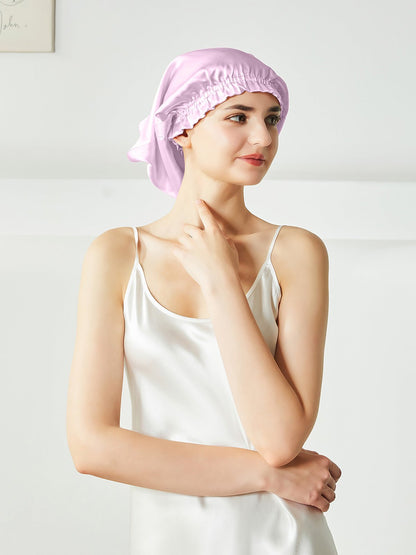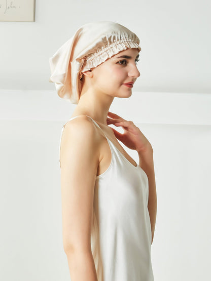 This is a pure silk sleep bonnet. You can be put your hair in the nightcap very relaxedly, instead of being folded on the head like the short nightcap, it can be easily worn on the head before going to bed. Silk can effectively keep the hair properly hydrated, not frizzy, and is beneficial for the hair.