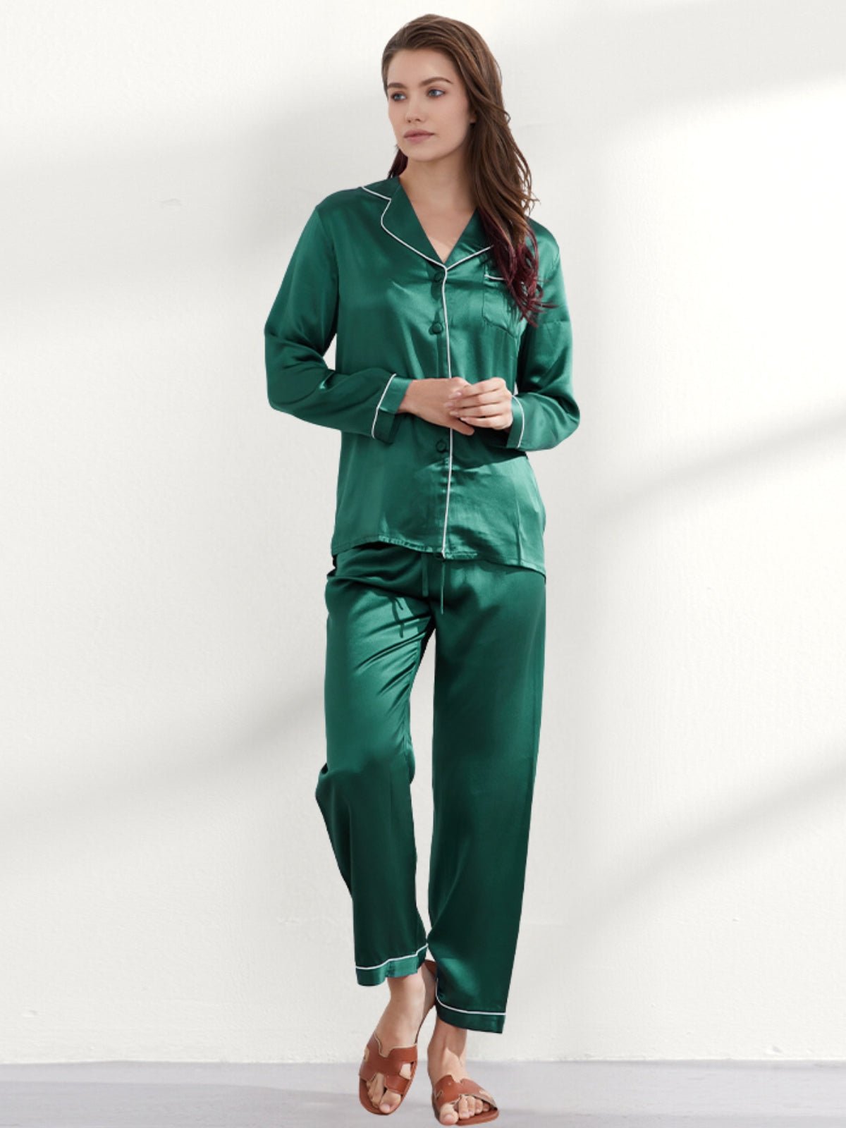 Our loose and comfortable silk pajama set is sweat-wicking and breathable better than cotton. And the 18 kinds of natural substances contained in silk can protect our skin, helps to eliminate allergies and asthma, which could be caused by cotton and other synthetic fibers.