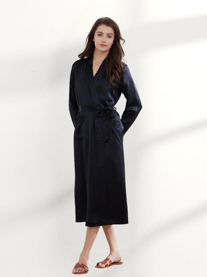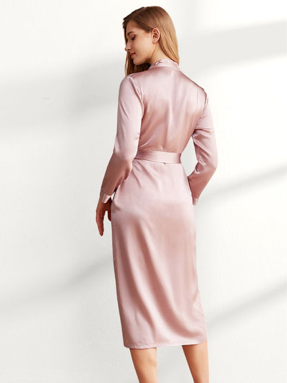 This silk pajamas with long robe will brighten your night whether it is worn alone or with another piece. It has hydrophilic ingredients and is made entirely of mulberry silk, making it gentle enough for delicate skin.