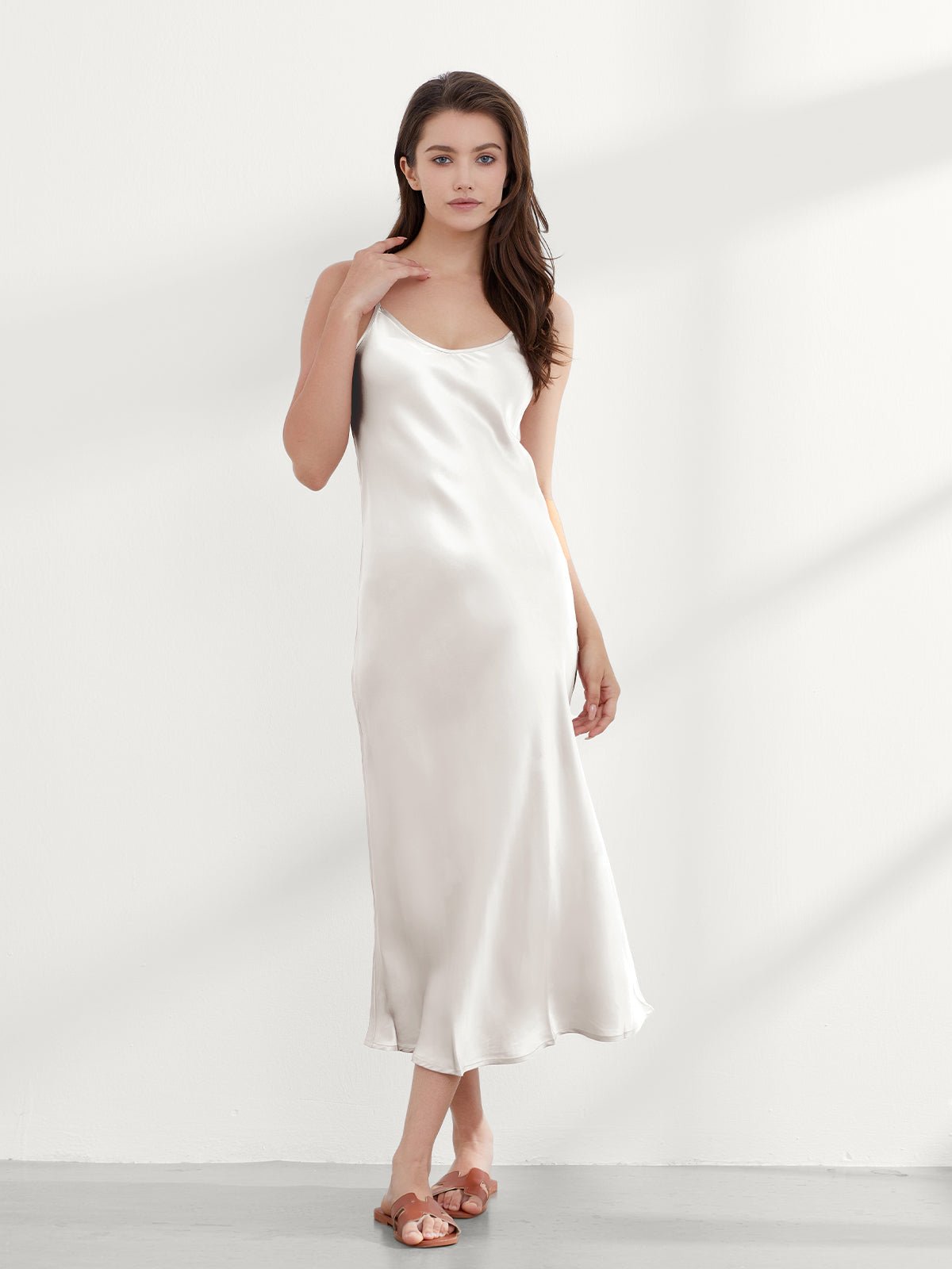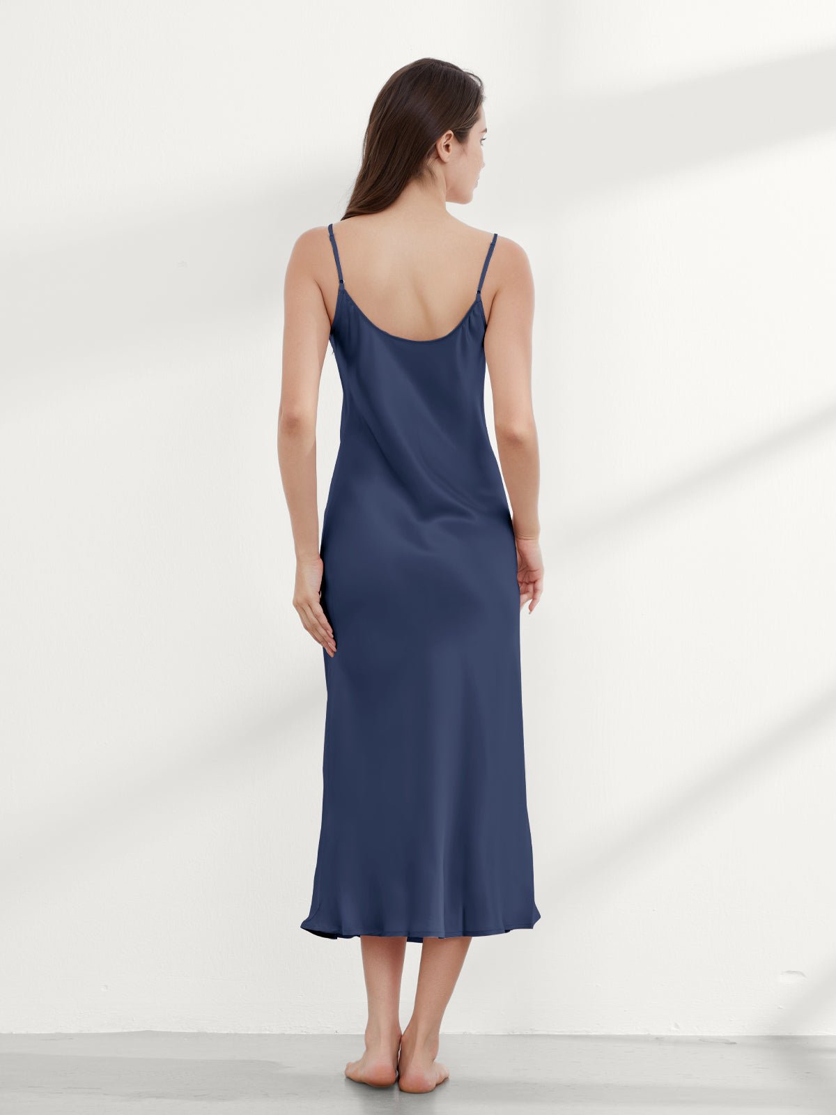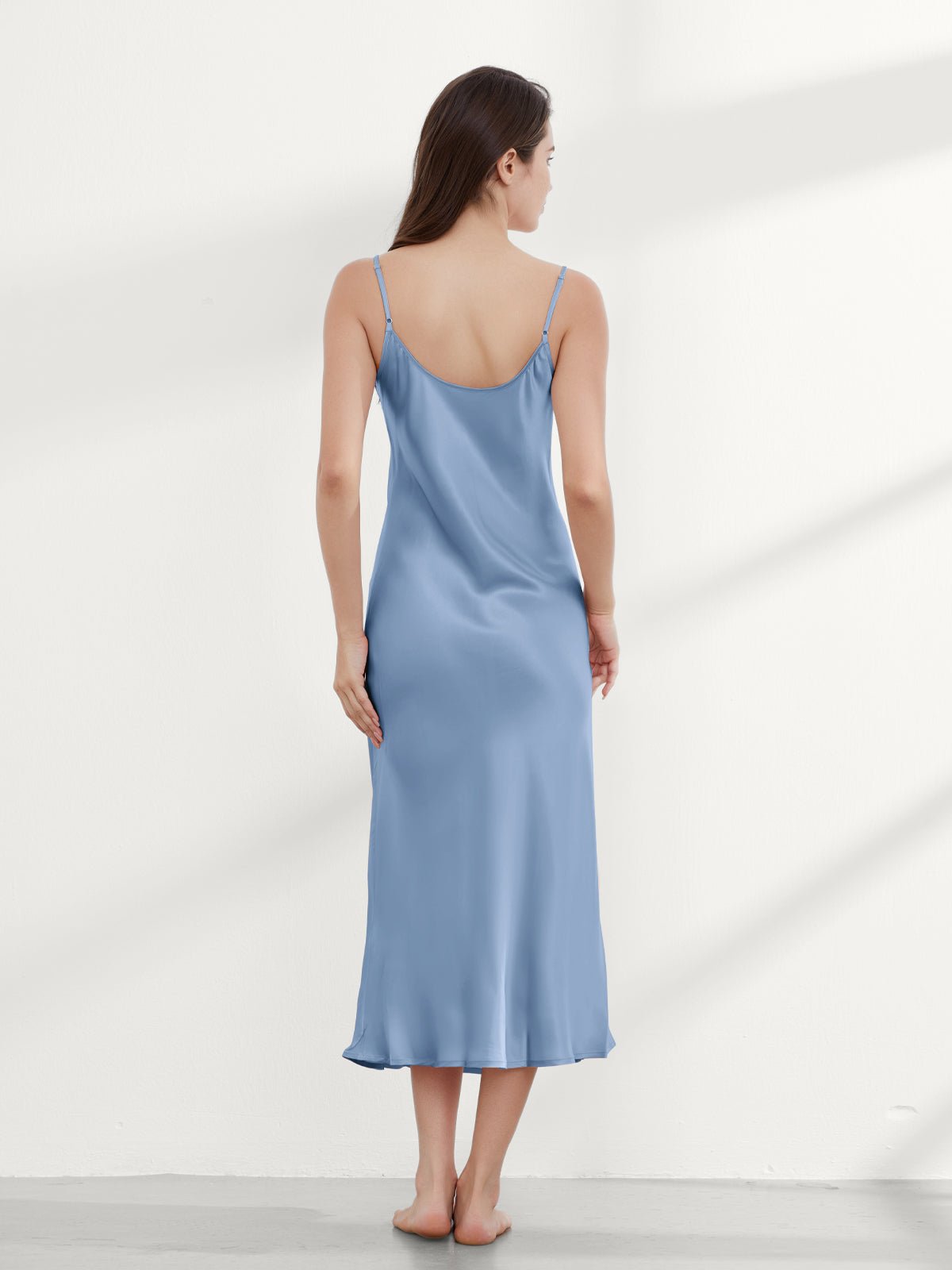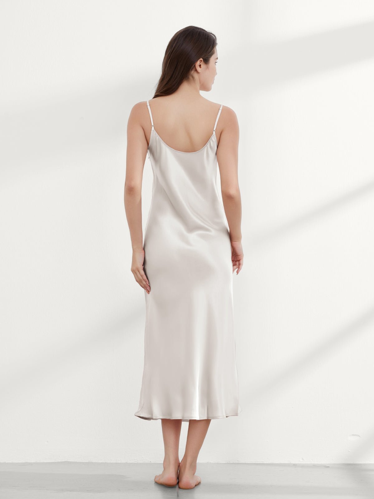 This ankle-length 100 mulberry silk nightgown long is cut on the bias for an incredibly slim fit, gorgeous drape, and adjustable shoulder straps. Add a shawl, or coat, or wear it alone, and you have the perfect evening look!