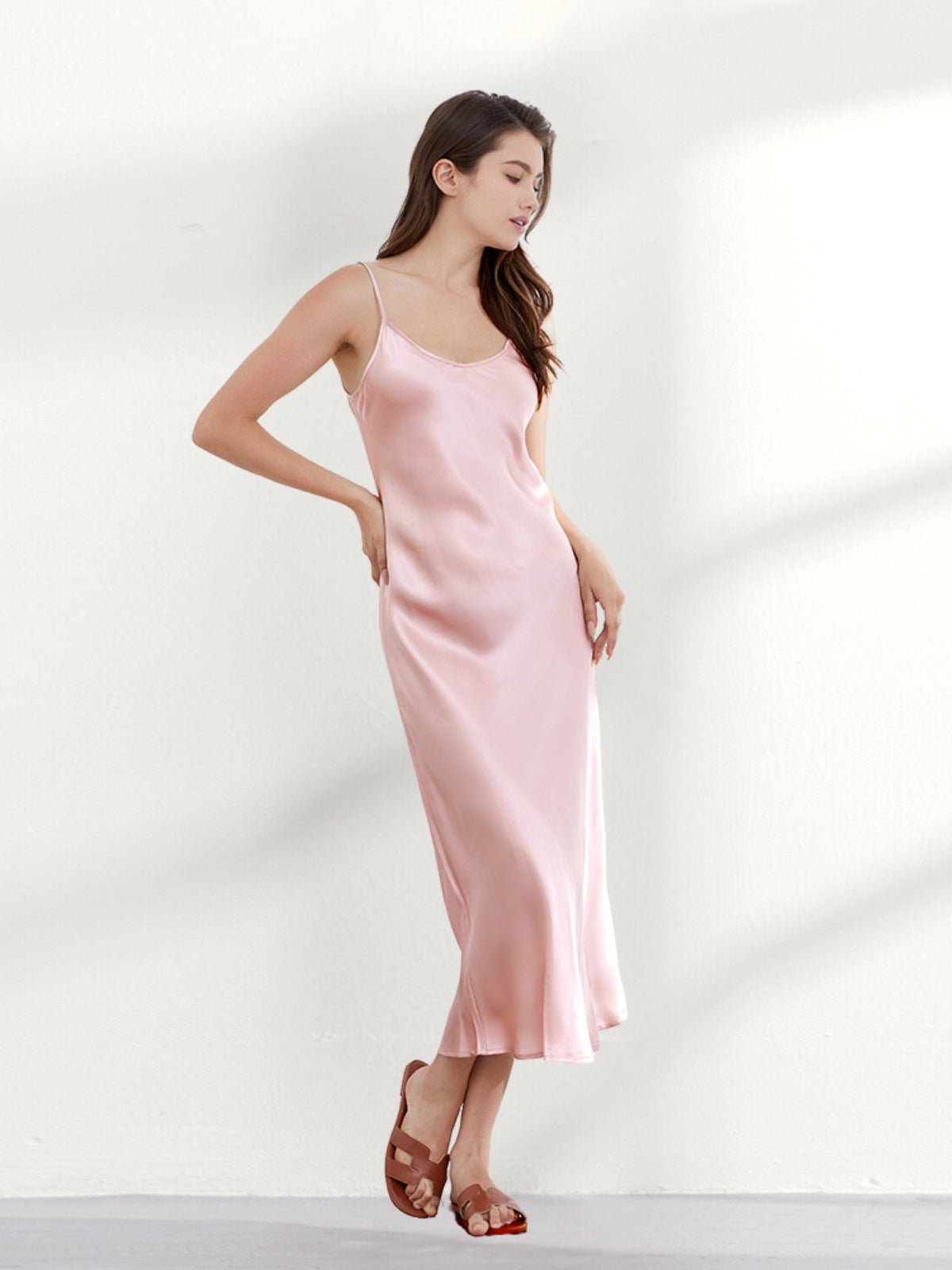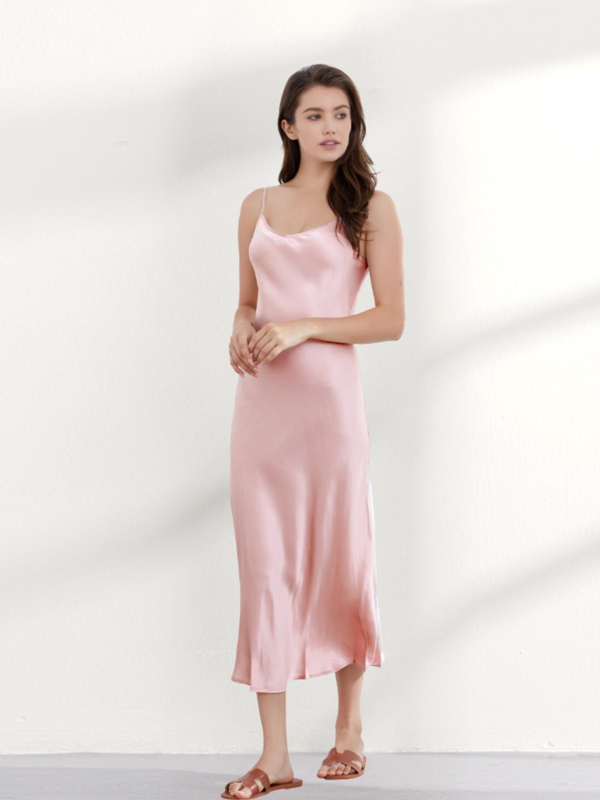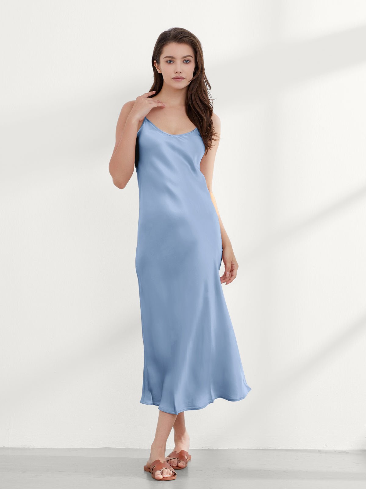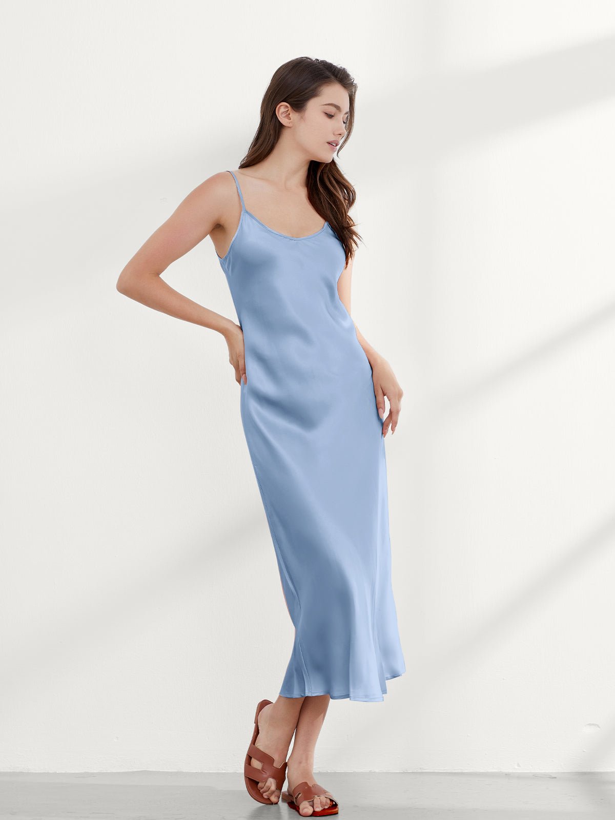 This ankle-length 100 mulberry silk nightgown long is cut on the bias for an incredibly slim fit, gorgeous drape, and adjustable shoulder straps. Add a shawl, or coat, or wear it alone, and you have the perfect evening look!