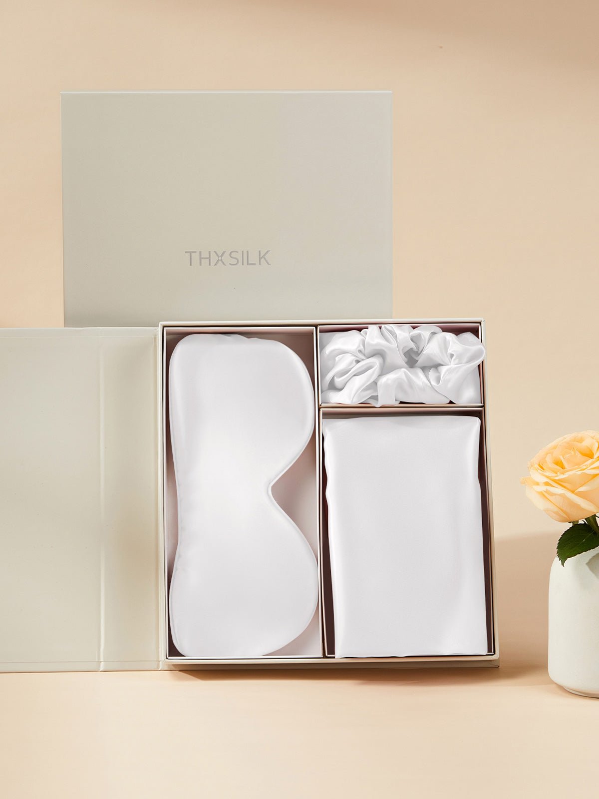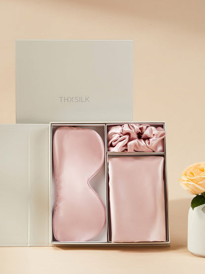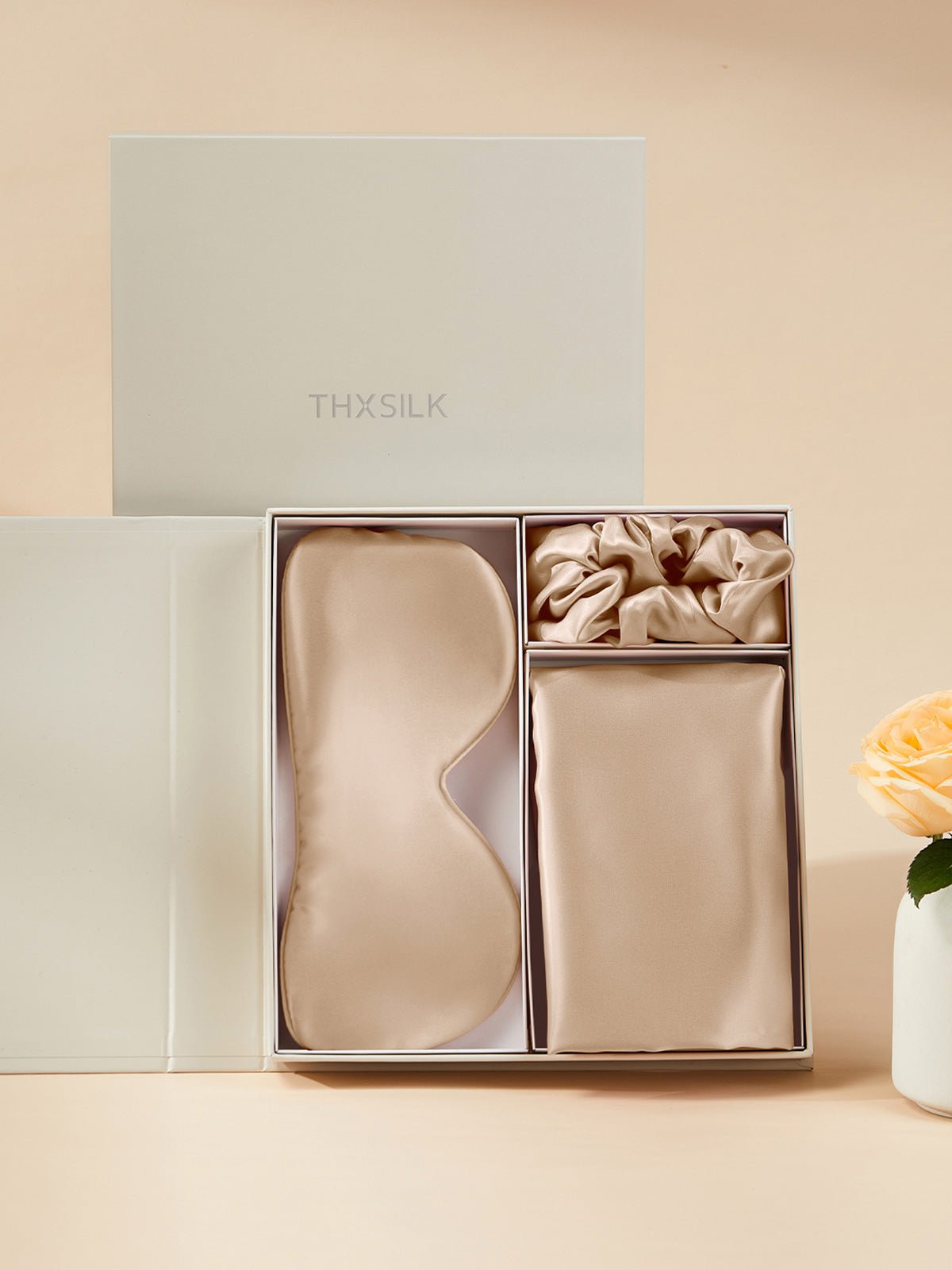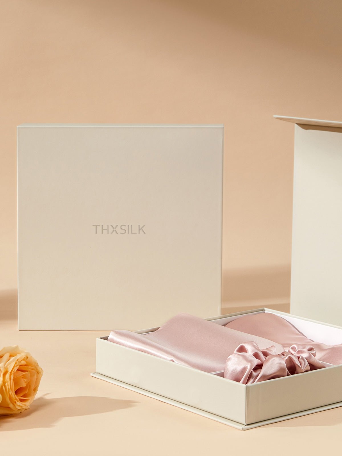 Silk has excellent natural properties of anti-bacterial, anti-mold, and anti-mite. THXSILK's 25 momme sleep set (Hair Scrunchies, 19 momme) is luxurious, sophisticated, and it's a perfect gift for parents and friends.