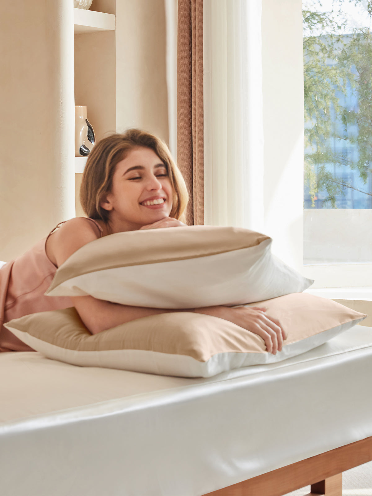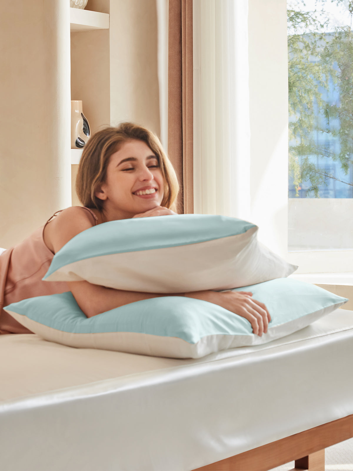 Our 16 Momme Silk Pillowcases (with a 300TC cotton underside) is a bedding essential. Sleeping on silk pillowcases can encourage skin cell repair by soothing the skin. Sleeping on silk pillowcases can also improves your hair texture by preventing frizz and split ends.