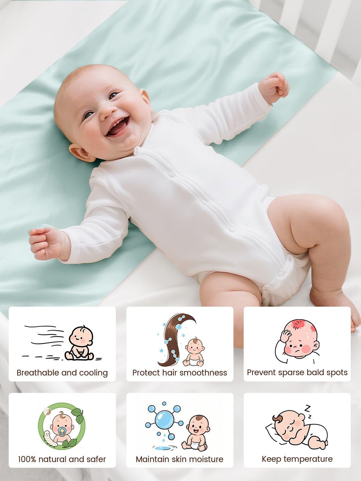 Protect and nurture your baby's hair with our designed Crib Silky Sleeve—a hypoallergenic silk that reduces frizz, balding, and breakage while keeping hair moisturized and cool.