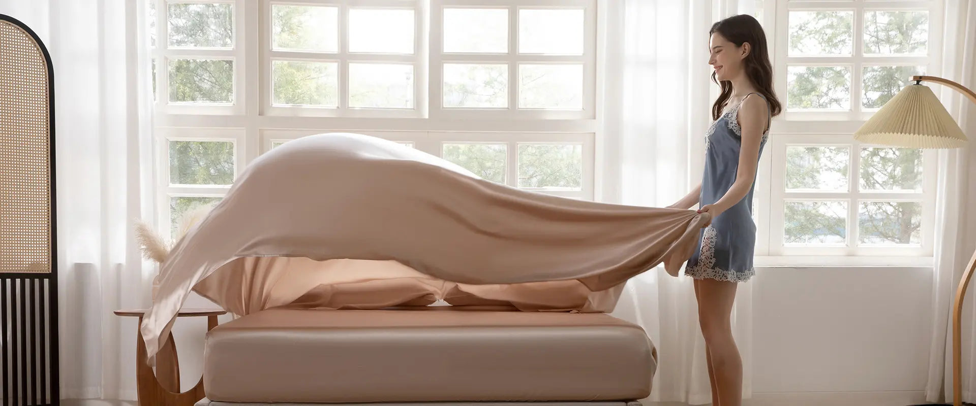 Utilizing advanced wide-width looms, our silk sheets are woven as one continuous, seamless piece. This eliminates irritating center seams, providing an expansive and perfectly smooth sleeping surface that enhances both comfort and structural integrity.