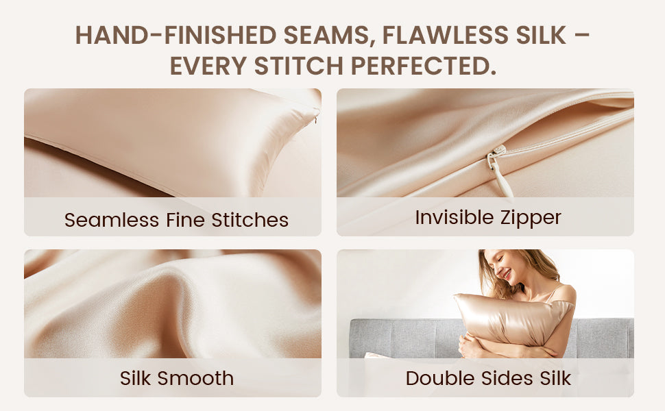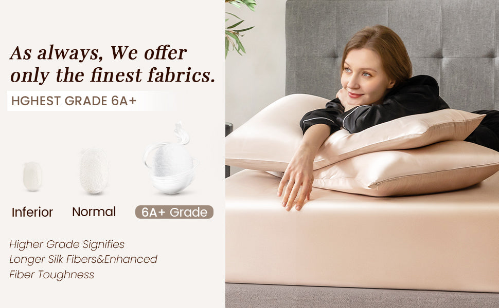 This 19 momme silk pillowcase is made from 6A grade premium mulberry silk.pillowcase made of pure mulberry silk has low friction and a soft texture perfect for those who want to sleep on premium quality bedding that is gentle and delicate on the skin. Silk has natural anti-allergic and anti-bacterial properties, so silk pillowcases are great anti-inflammatory pillowcases for those who suffer from pimples or acne on the face.