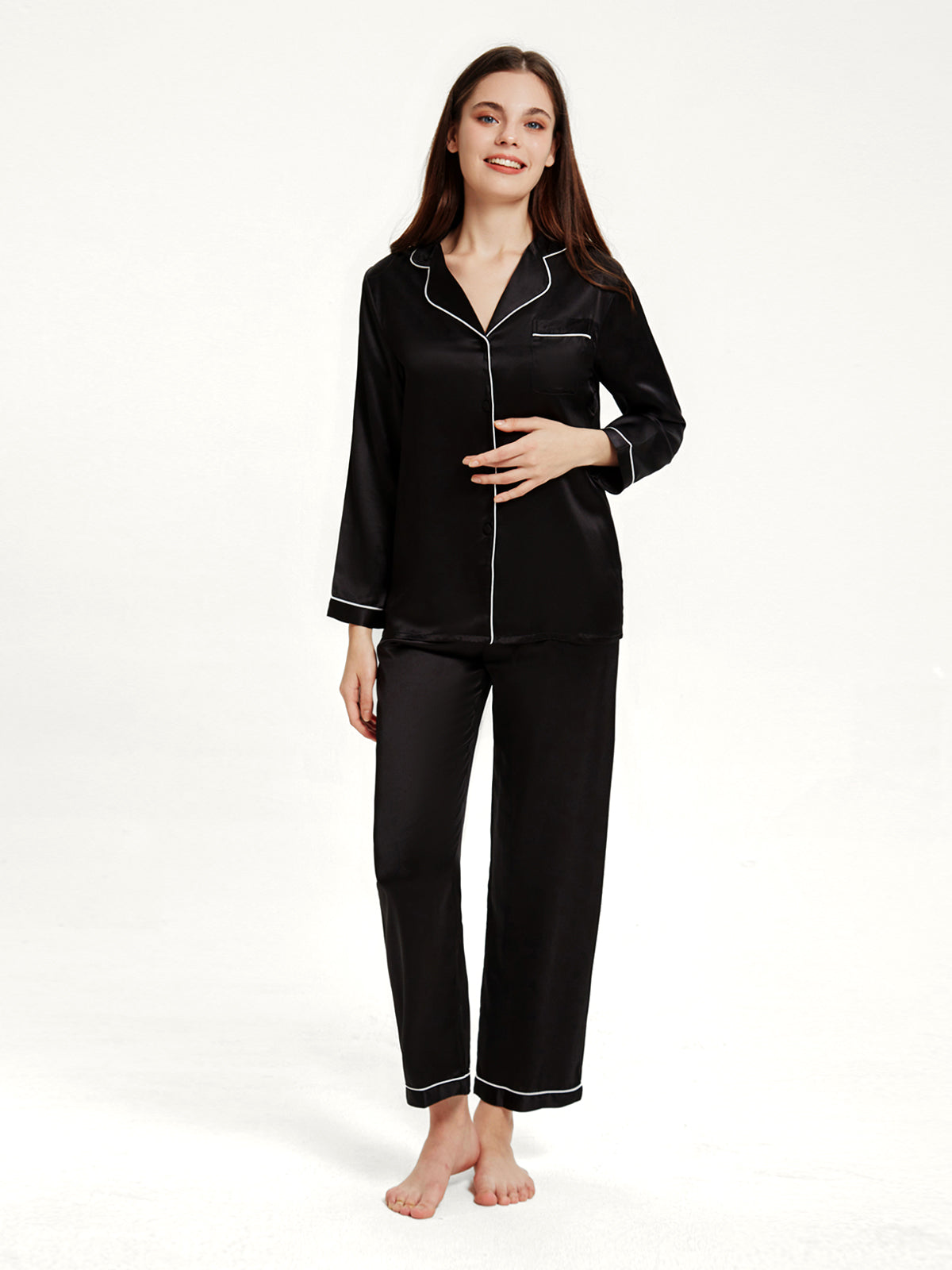 - Style: Two-piece silk pajamas set