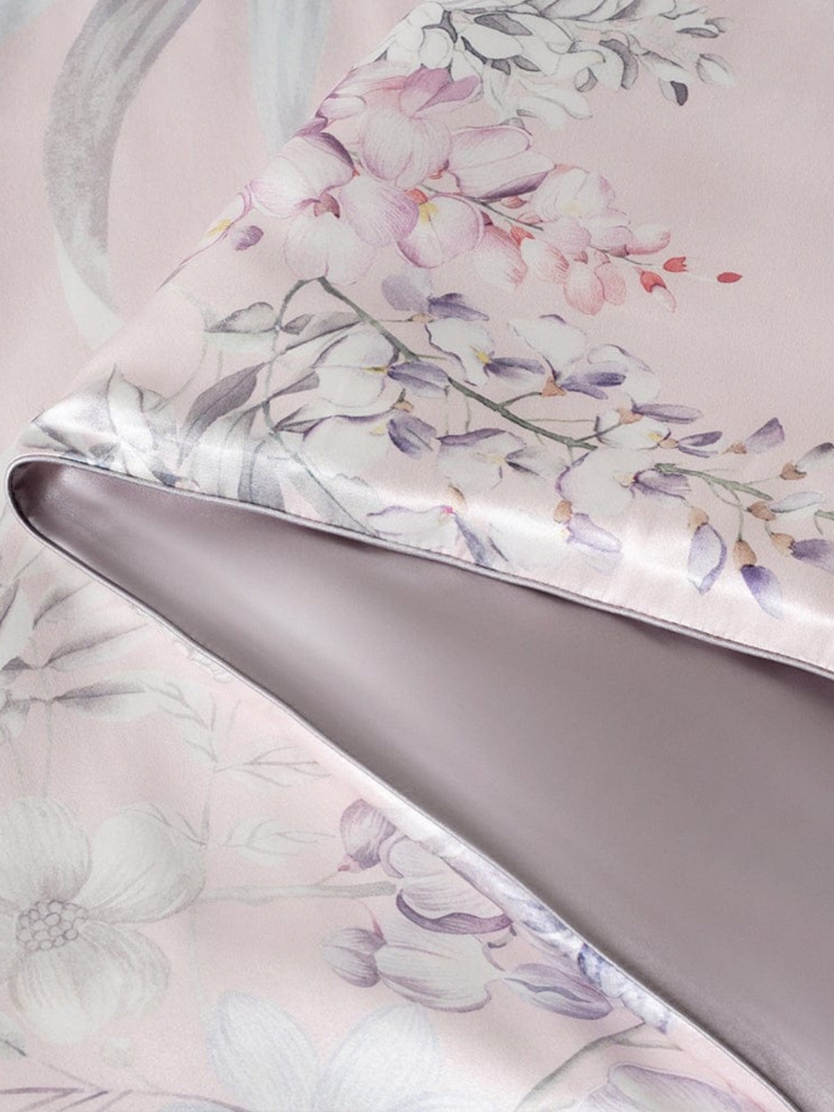 Floral Print Silk Cooling Blanket Filled with 100% Mulberry Silk