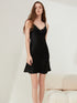 This V-neck silk chemise nightgown is made from 19 momme luxurious silk fabric, and owning it makes you feel like you're the heroine of a TV show. The simple shape and elegant color make you fall in love with it at first glance, and the premium silk fabric makes this dress shine with a diamond-like sheen while being light and airy, but the real sophistication of this washable silk chemise is undoubtedly its V-neck, and the delicate embroidery makes it simple and gorgeous.