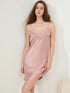 This V-neck silk chemise nightgown is made from 19 momme luxurious silk fabric, and owning it makes you feel like you're the heroine of a TV show. The simple shape and elegant color make you fall in love with it at first glance, and the premium silk fabric makes this dress shine with a diamond-like sheen while being light and airy, but the real sophistication of this washable silk chemise is undoubtedly its V-neck, and the delicate embroidery makes it simple and gorgeous.