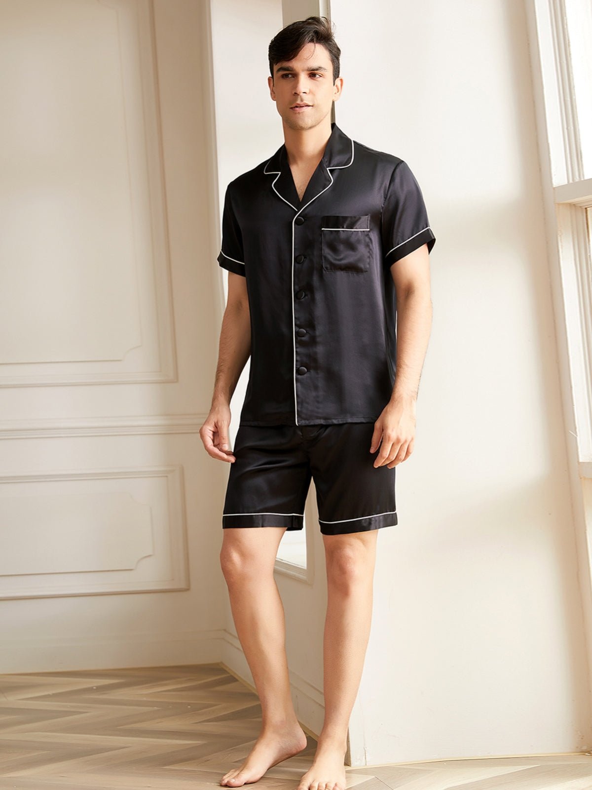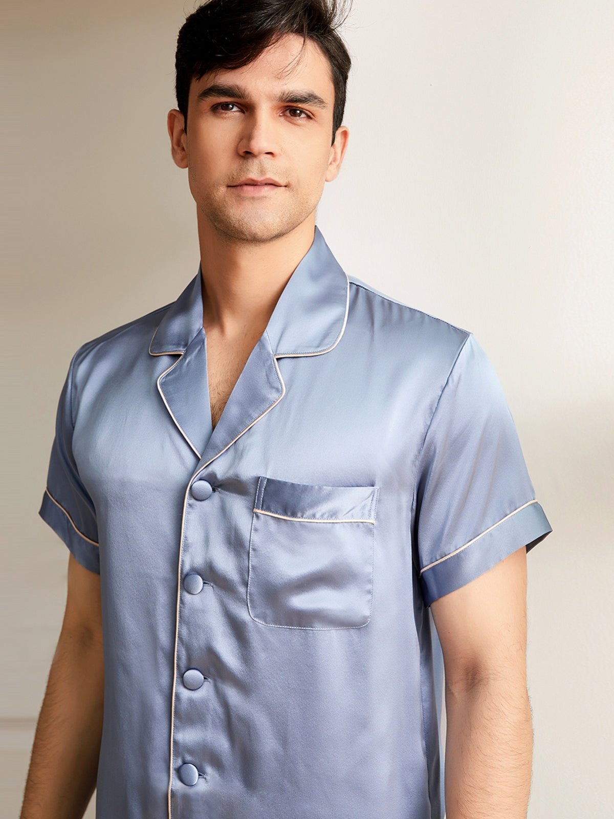 When our classic top and matching pants meet our beloved silk fabrication, a love story begins. Introducing our newest 100% Mulberry silk set. Perfect for the men in your life who loves a slice of luxury.
