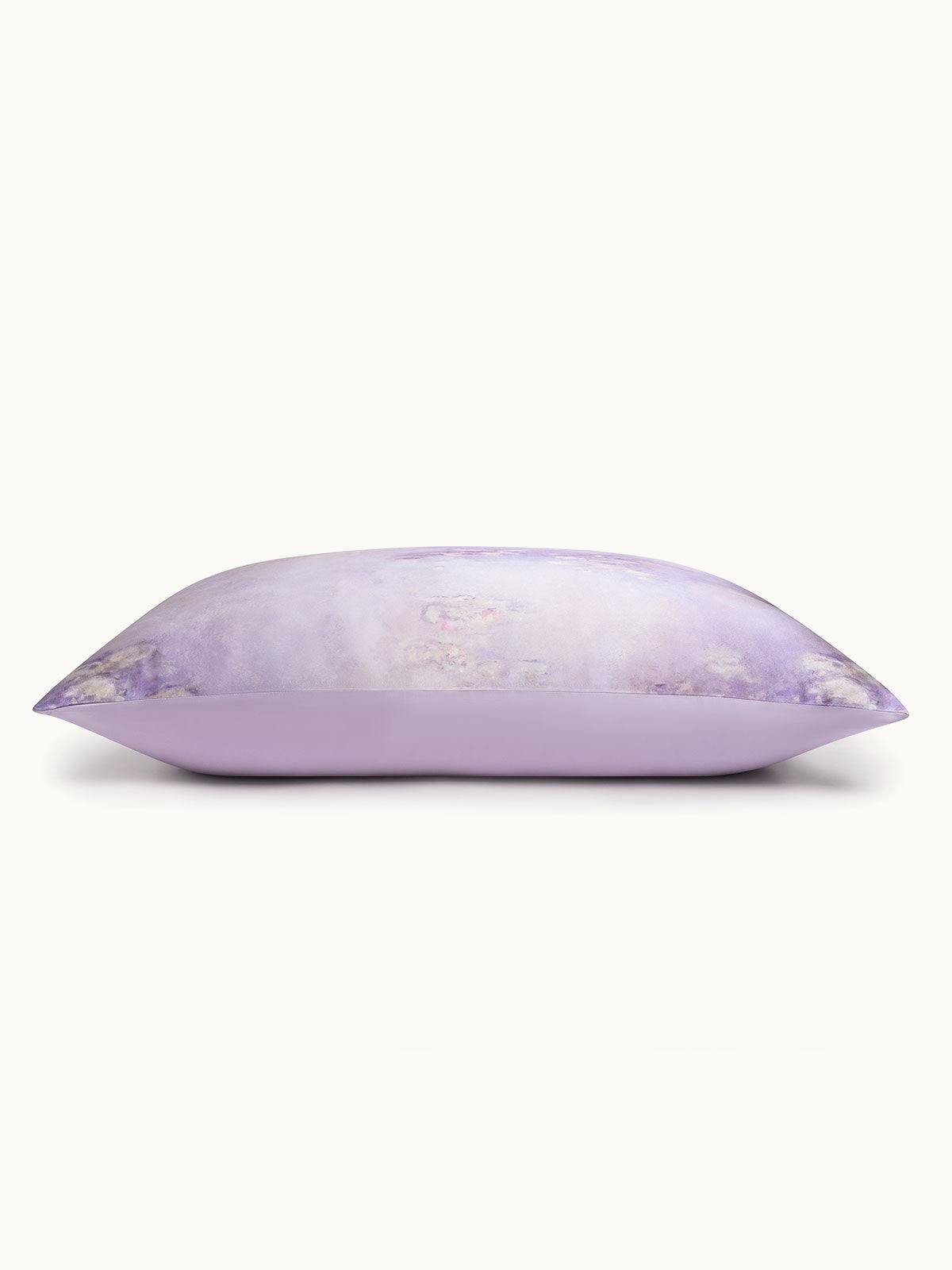 Your sweet dreams are made of our Water Lilies Lilac Silk Pillowcases! Made from 100% 19 momme mulberry silk and it features Artist Monet's Water Lilies Famous Painting. Very charming and they can elevate your sleep experience. They are packed in a fashion box, a good choice for gifting an exquisite present.Piped edges and a hidden zipper closure add practicality with a modern touch to your bedding collection. They help keep your skin and hair hydrated and friction-free, while getting a better night sleep!