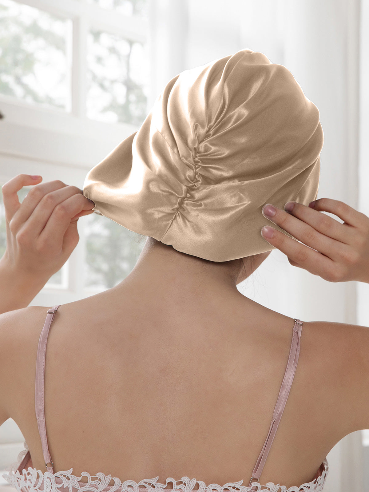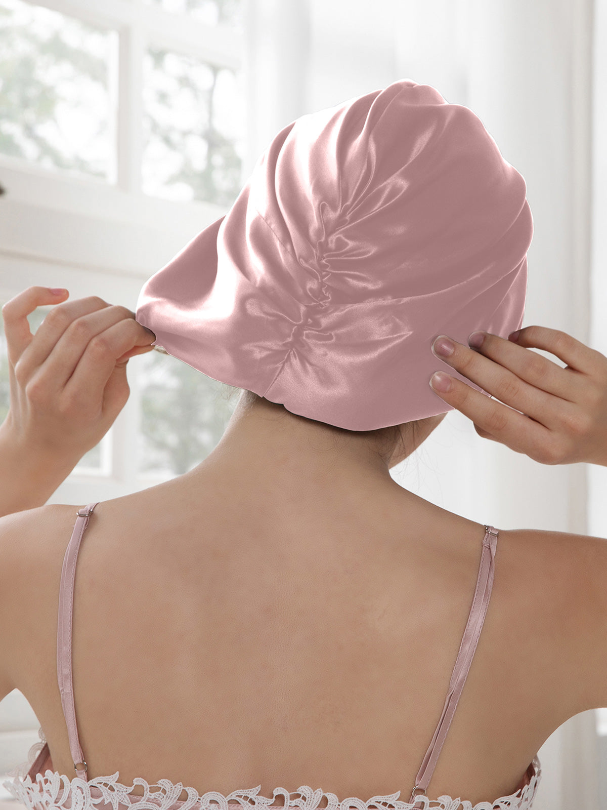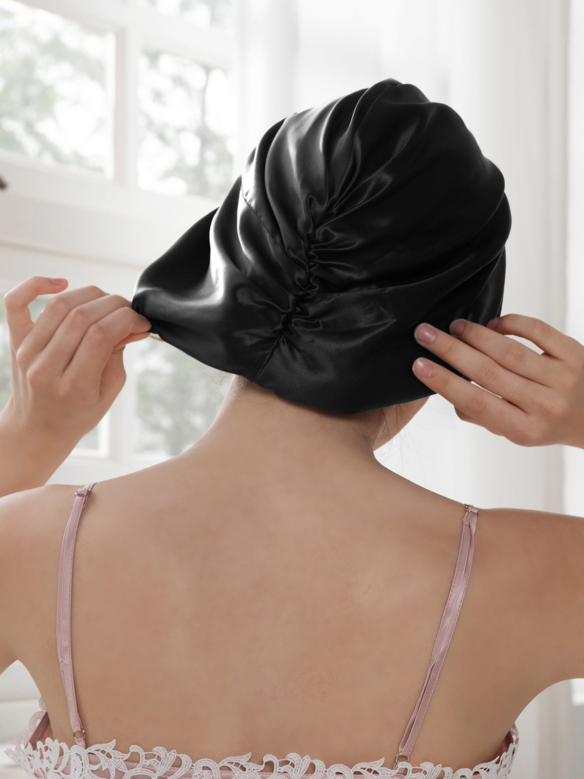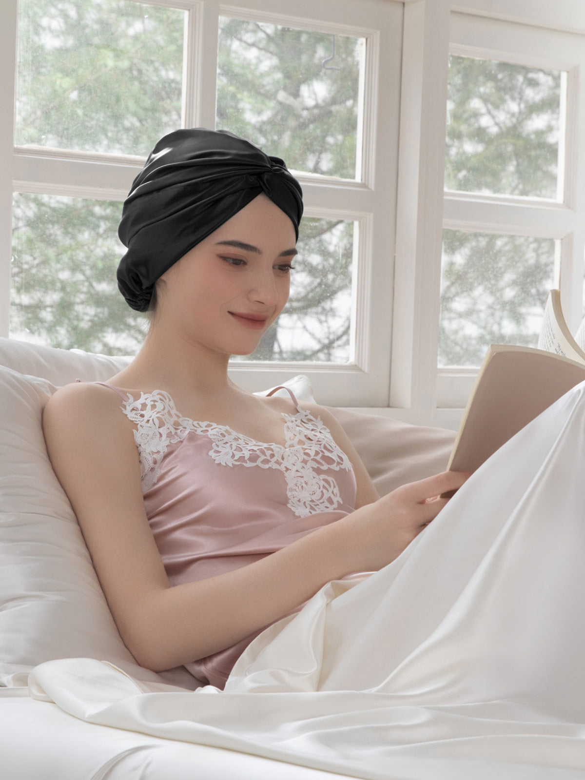 This is a retro-style turban featuring a long hat with folds, this hat can be worn as a fashion accessory, or it can be a great nightcap. The fabric is made of 100% real silk. It can reduce frizzy hair and is good for nourishing and protecting your hair.