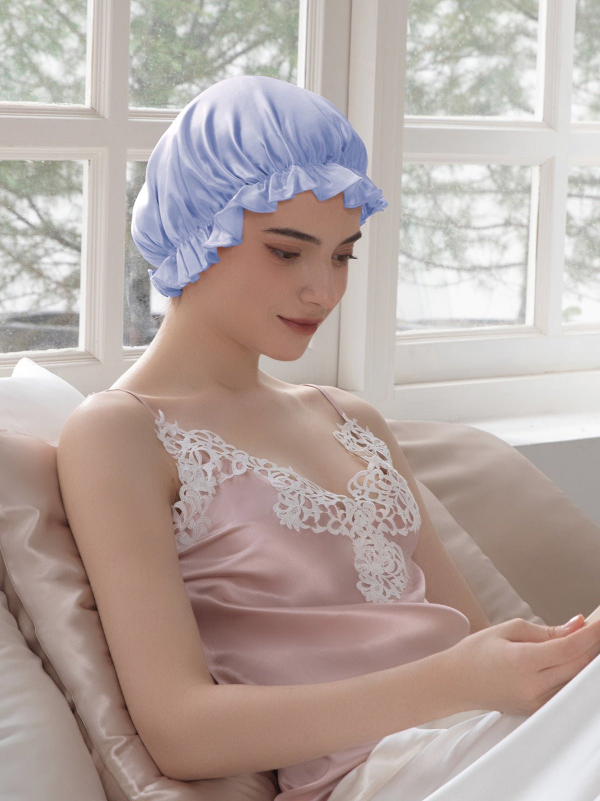 This silk night cap provides maximum hair protection and prevents tangles. It also locks in moisture and adds shine to hair. Also, the cap is very soft and gentle on your hair, it can prevent your hair from drying, breaking, and falling off overnight. So you wake up each morning with hair soft and gorgeous, and our night cap is soft enough to wear to sleep.